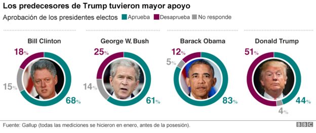 Las encuestas sugieren que el índice de aprobación de Trump como presidente electo es mucho menor que el de sus tres predecesores más recientes.