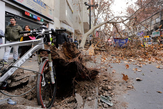 Además, el tronco gruesas ramas quedaron esparcidas por todo el lugar y obligaron a Carabineros a suspender el tránsito por ambas vías.