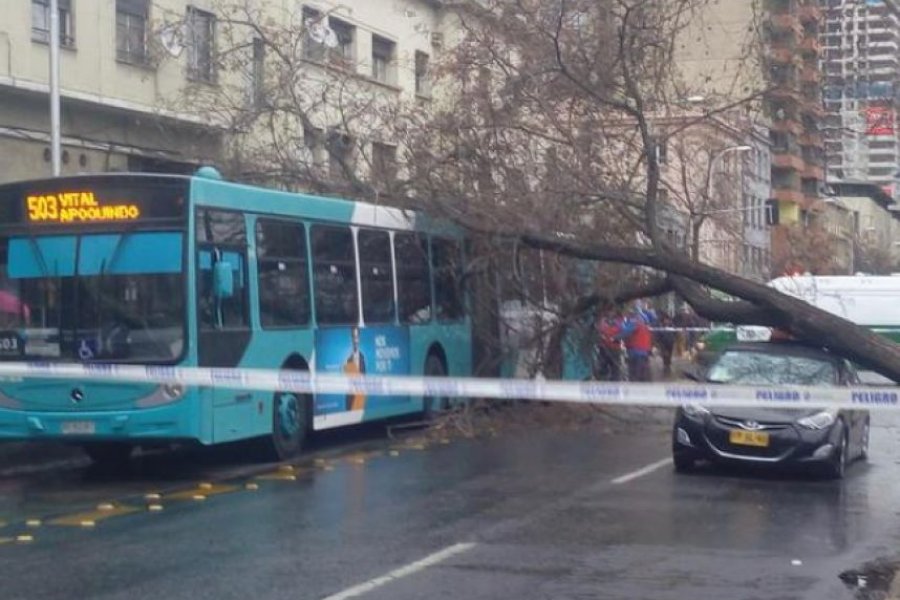 Por otro lado, la radio Biobío informó de la caída de otro árbol en General Mackenna con Morandé, el que se propinó arriba de un Taxi, dejando lesionado al conductor.
