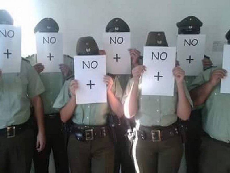 Durante el pasado fin de semana se viralizó una fotografía donde aparecen supuestos carabineros con el rostro tapado por carteles con el mensaje "No +".