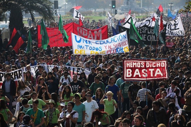 La presidenta de la FECh, Camila Rojas, estimó en 120 mil los asistentes a la marcha. La cifra contrasta con las proyecciones Carabineros.