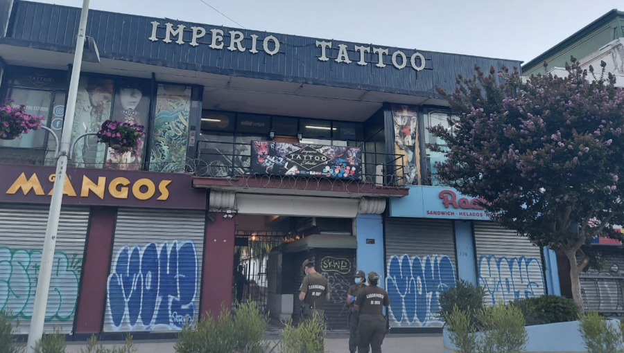 Siete personas fueron detenidas luego de ser sorprendidas trabajando al interior de un local de tatuajes que funcionaba en la calle Valparaíso, en pleno centro de Viña del Mar.