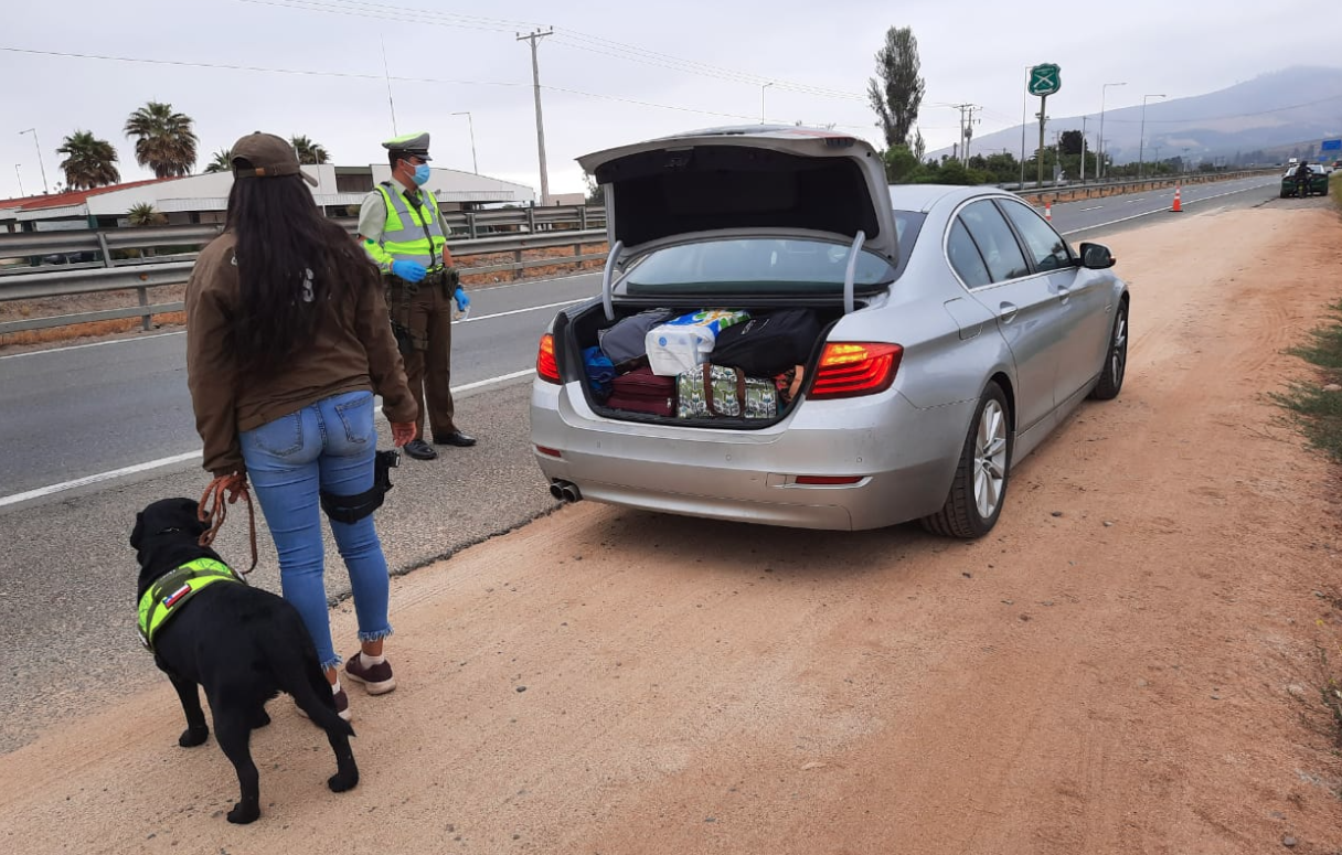 Dicho sujeto llevaba escondida la droga al interior del auto, la que no pasó desapercibida para el olfato del can «Endora», del Emblema Verde, la cual en una primera revisión realizó señales frenéticas sobre un bolso donde se encontraban escondidos los paquetes de marihuana.