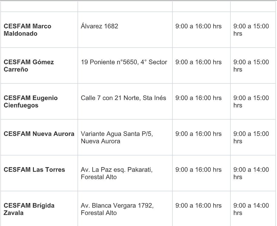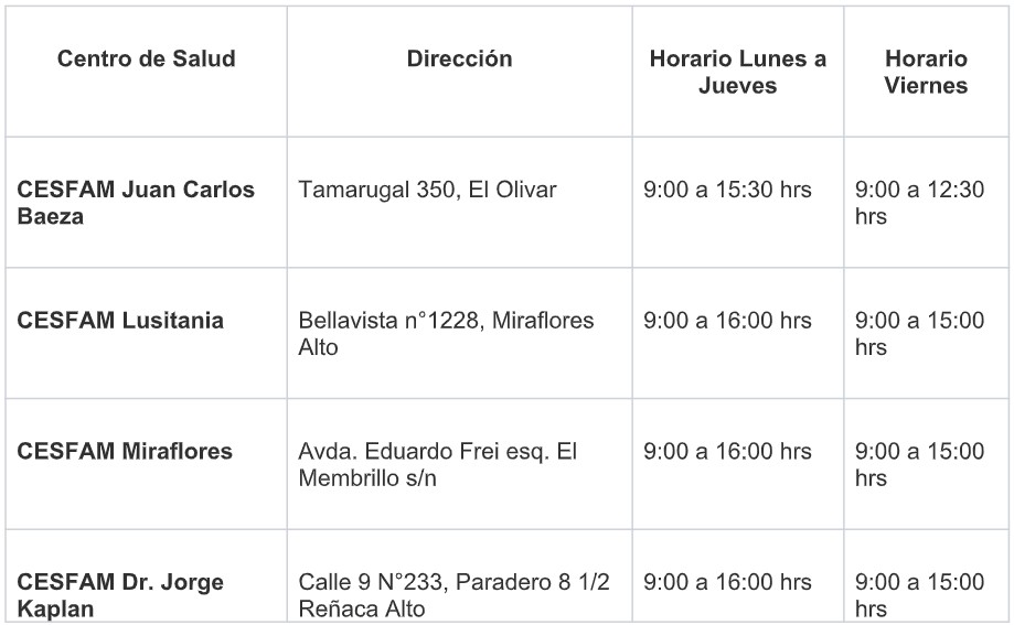 Los siguientes centros de salud en Viña del Mar están habilitados con sus respectivos horarios para recibir a la comunidad:
