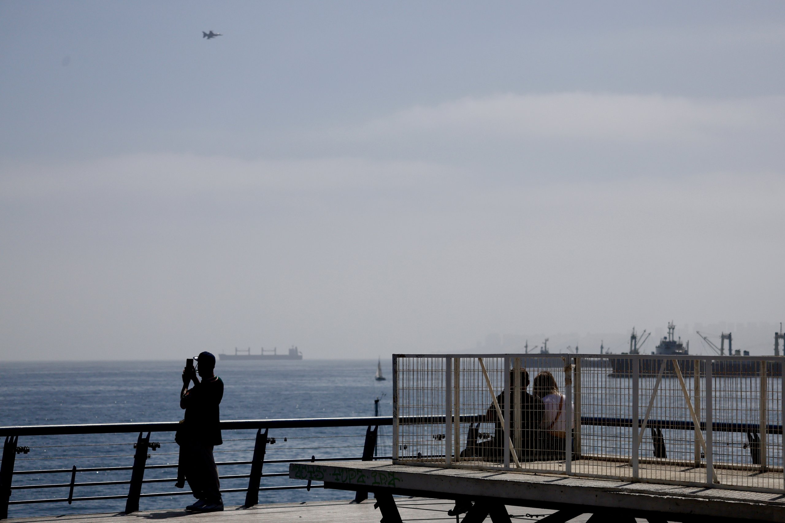Aunque la neblina afectó la visualización del espectáculos, los aviones caza F-16 de la Fuerza Aérea de Chile (FACh) desplegaron todo su potencial al sobrevolar los cielos de nueve comunas de la región de Valparaíso, tanto en la costa como en el interior.