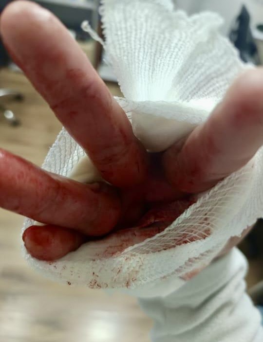 La situación escaló aún más, ya que "al encontrarse malo el marco de la puerta por una situación ocurrida en el turno anterior, nos tenemos que poner en la puerta, haciendo presión con el cuerpo para evitar que la joven ingresara, ya que se encontraba con un cuchillo en la mano y señalaba no quedar tranquila hasta matarme. La situacion se mantiene por 20 minutos. Llega otra tens desde su casa, interviene con la joven y logra persuadirla para que entregue el cuchillo y salga del lugar. Ahí me llevan a la oficina y Carabineros llega a los minutos".