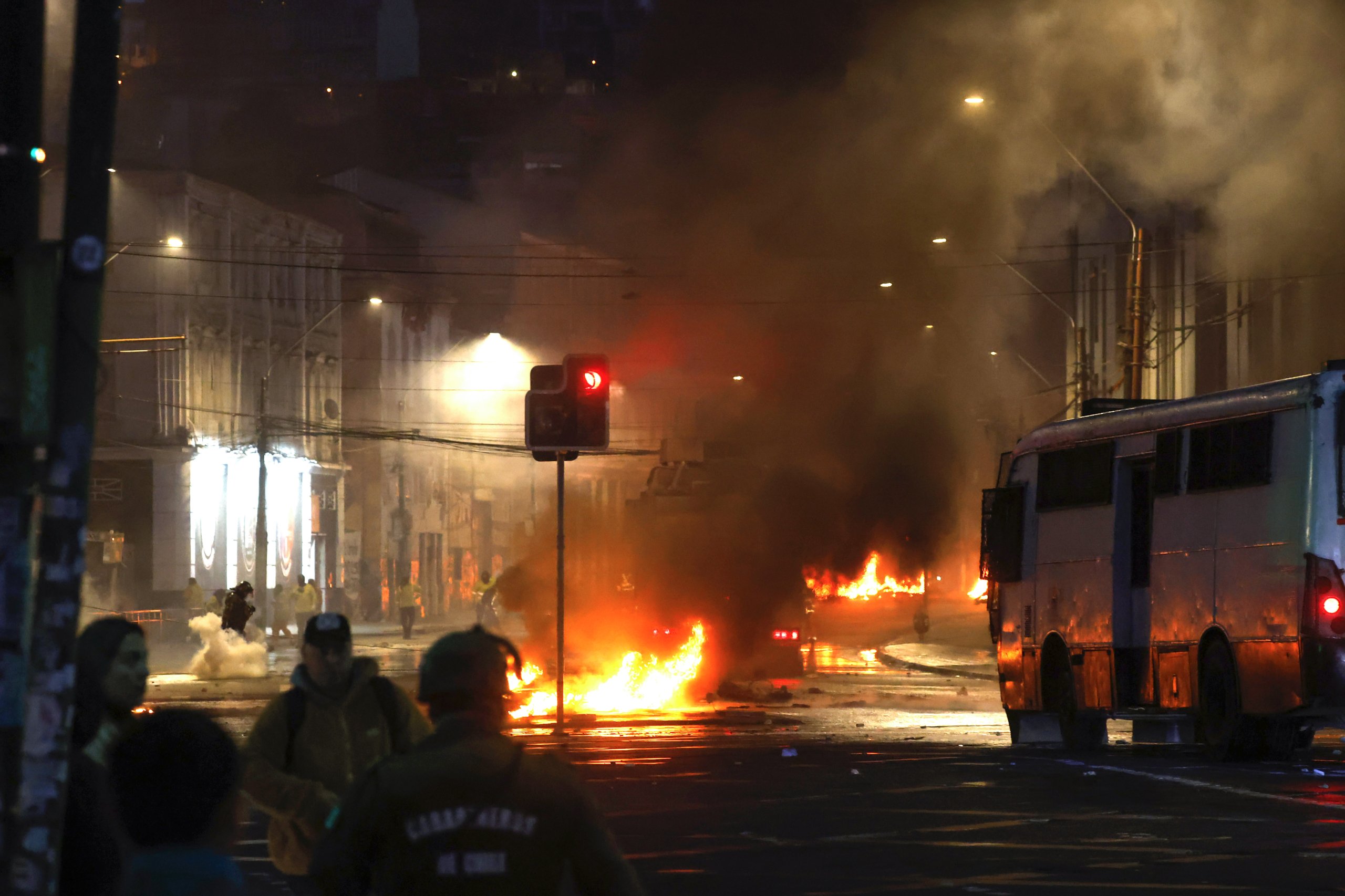 Fue en la transitada avenida Errázuriz, en los alrededores de la plaza Sotomayor, donde volvieron a instalar barricadas incendiarias para suspender el tránsito.