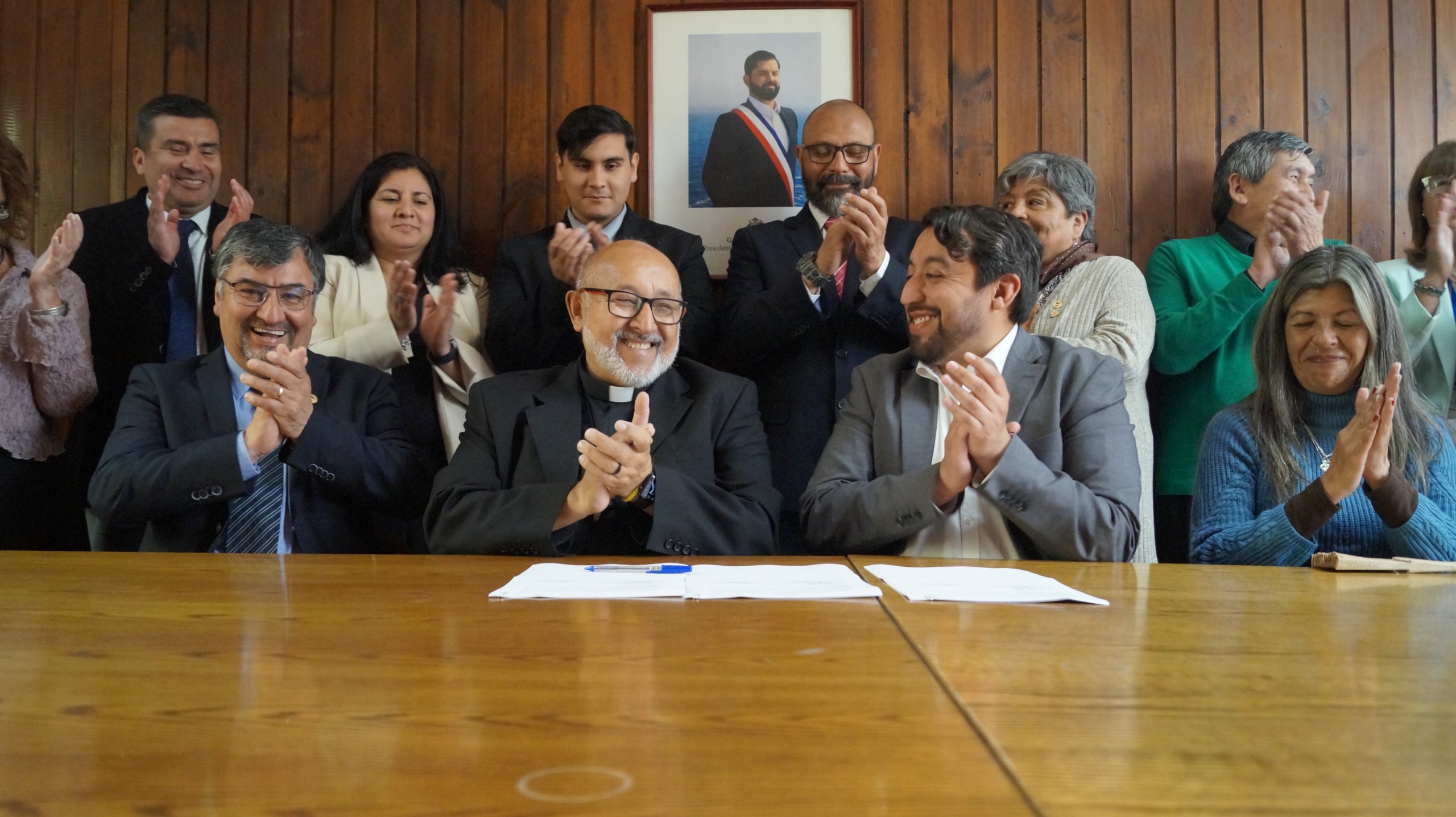 Además, el cuerpo directivo del establecimiento participó en la ceremonia de firma del convenio, que oficiliza este importante paso para esta comunidad educativa orionista.