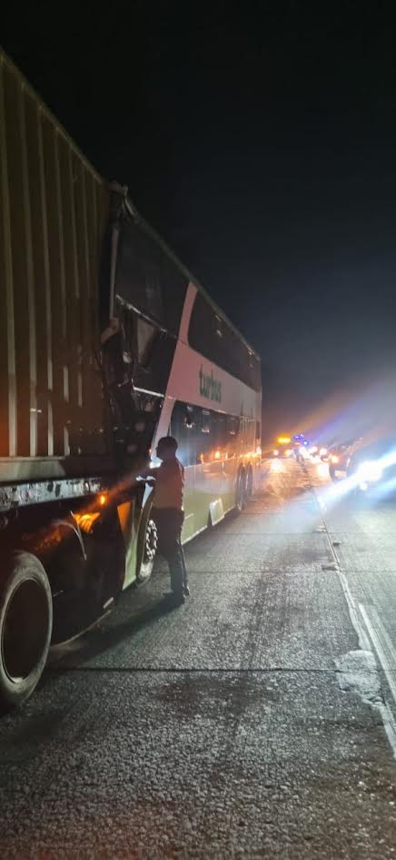 Se trató de la colisión por alcance en el kilómetro 85.300, entre una máquina de la empresa Tur-Bus y un camión.