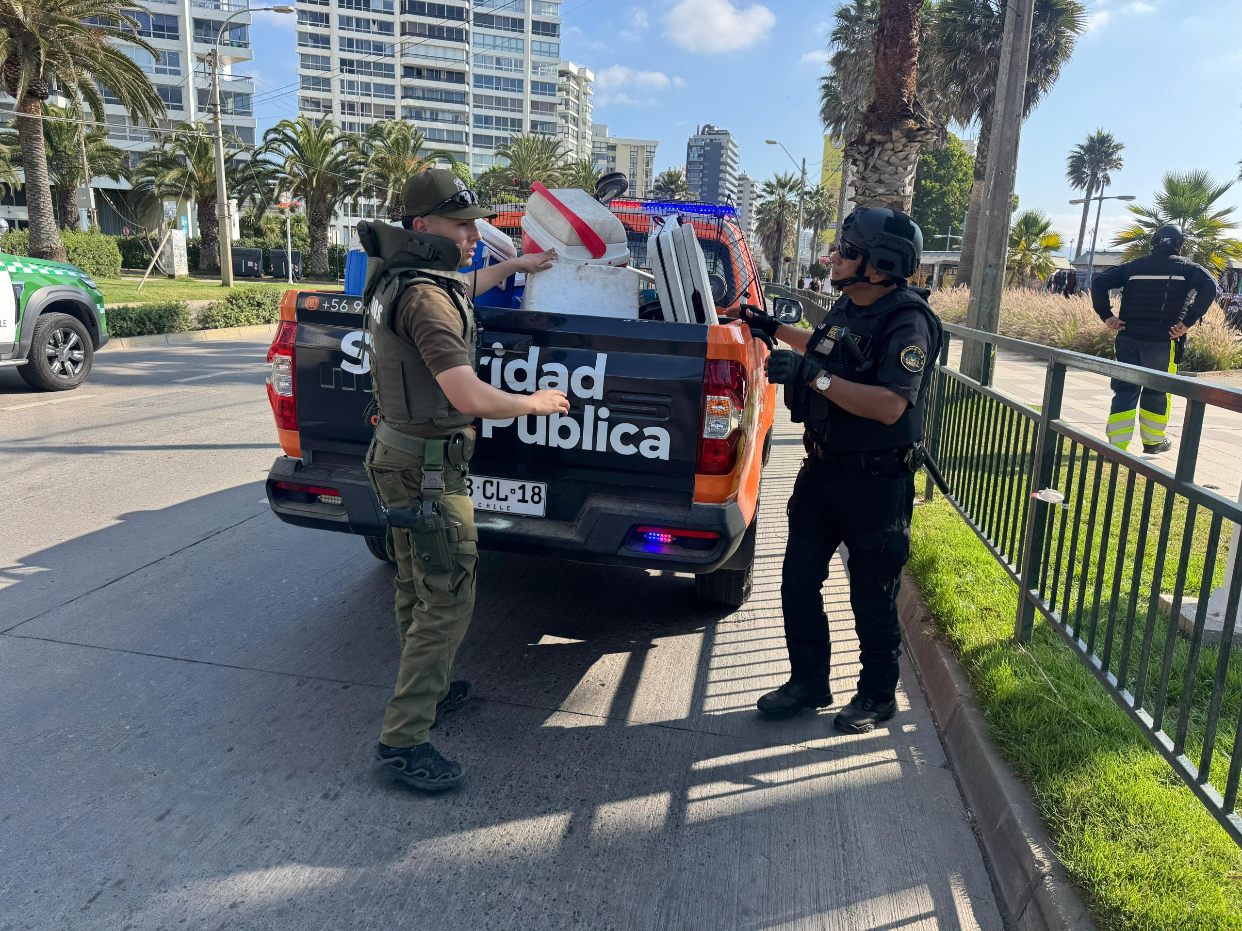 De igual forma, durante la jornada se realizaron alrededor de 300 controles, tanto de identidad como vehiculares, cursándose un total de 18 infracciones. A ello se sumaron tres decomisos a comerciantes ambulantes que vendían mojitos, prendas de vestir y otros accesorios, sin contar con las autorizaciones municipales correspondientes para operar. El procedimiento, que se ejecutó de manera conjunta entre Carabineros y el Municipio, concluyó sin que se registraran otros hechos de mayor connotación.