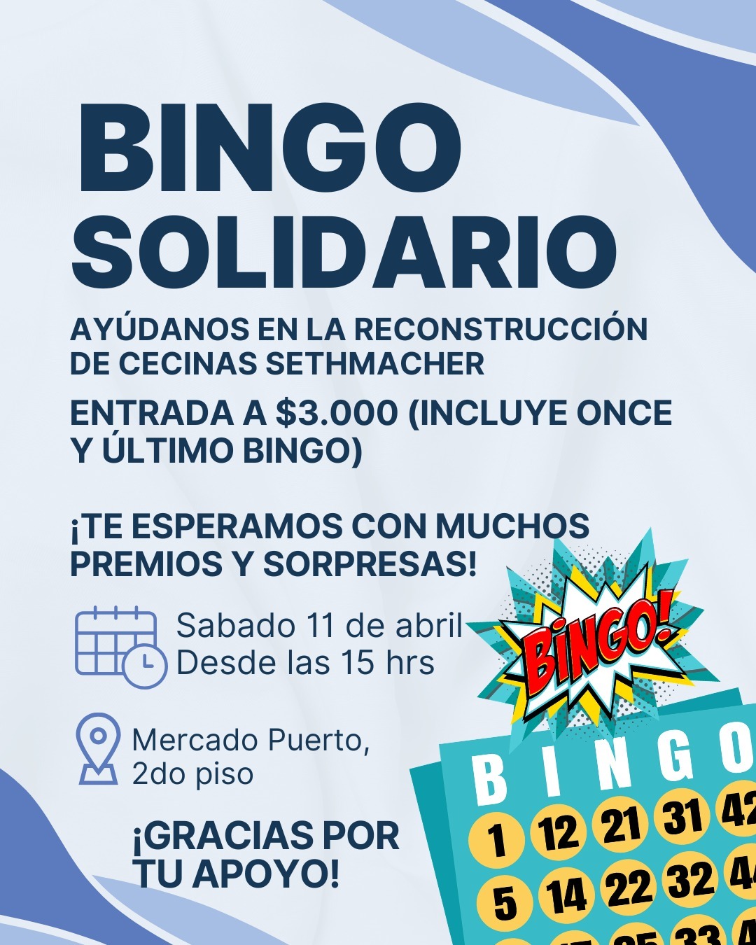 Desde la organización, Carmen Maureira, dueña del local Papajo y miembro de la Asociación Gremial de Barrio Puerto, sostuvo que "como gremio somos los que estamos organizando, con harto apoyo de la Municipalidad de Valparaíso, este bingo a beneficio de nuestros vecinos de Cecinas Sethmacher. Los esperamos a todos el día 11, en el segundo piso del Mercado Puerto, para que nos vengan a cooperar, para que podamos salir adelante, y para que Sethmacher vuelva a renacer. Es una empresa antigua y que necesita que ahora le apoyemos”.