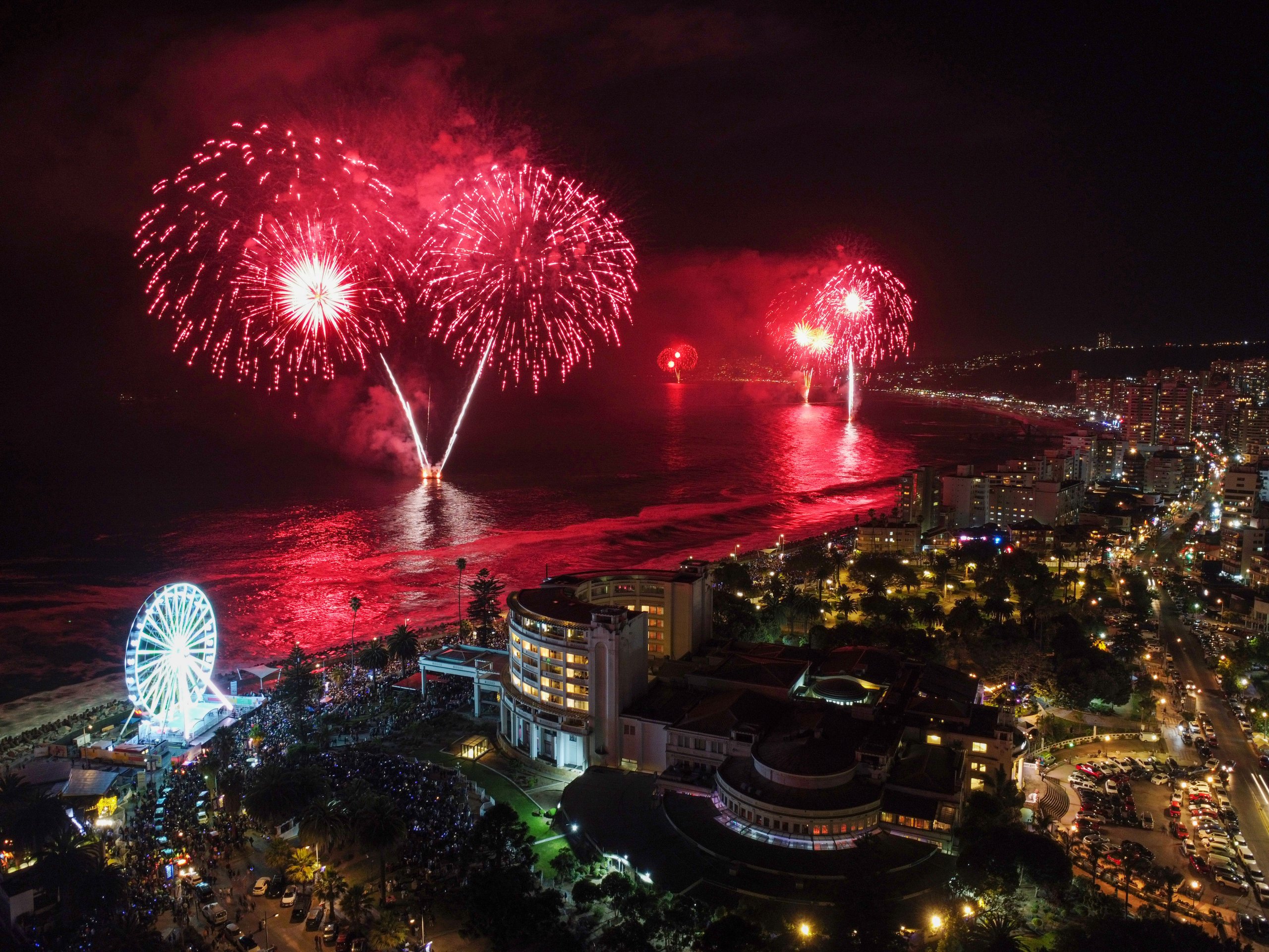 En el caso de Viña del Mar, el show estará a cargo de la empresa colombiana El Vaquero y tendrá una duración de 18 minutos, incorporando 300 combinaciones de diseños y colores, entre ellos palmas, perlas, peonías, corazones, crisantemos, anillos y sauces.