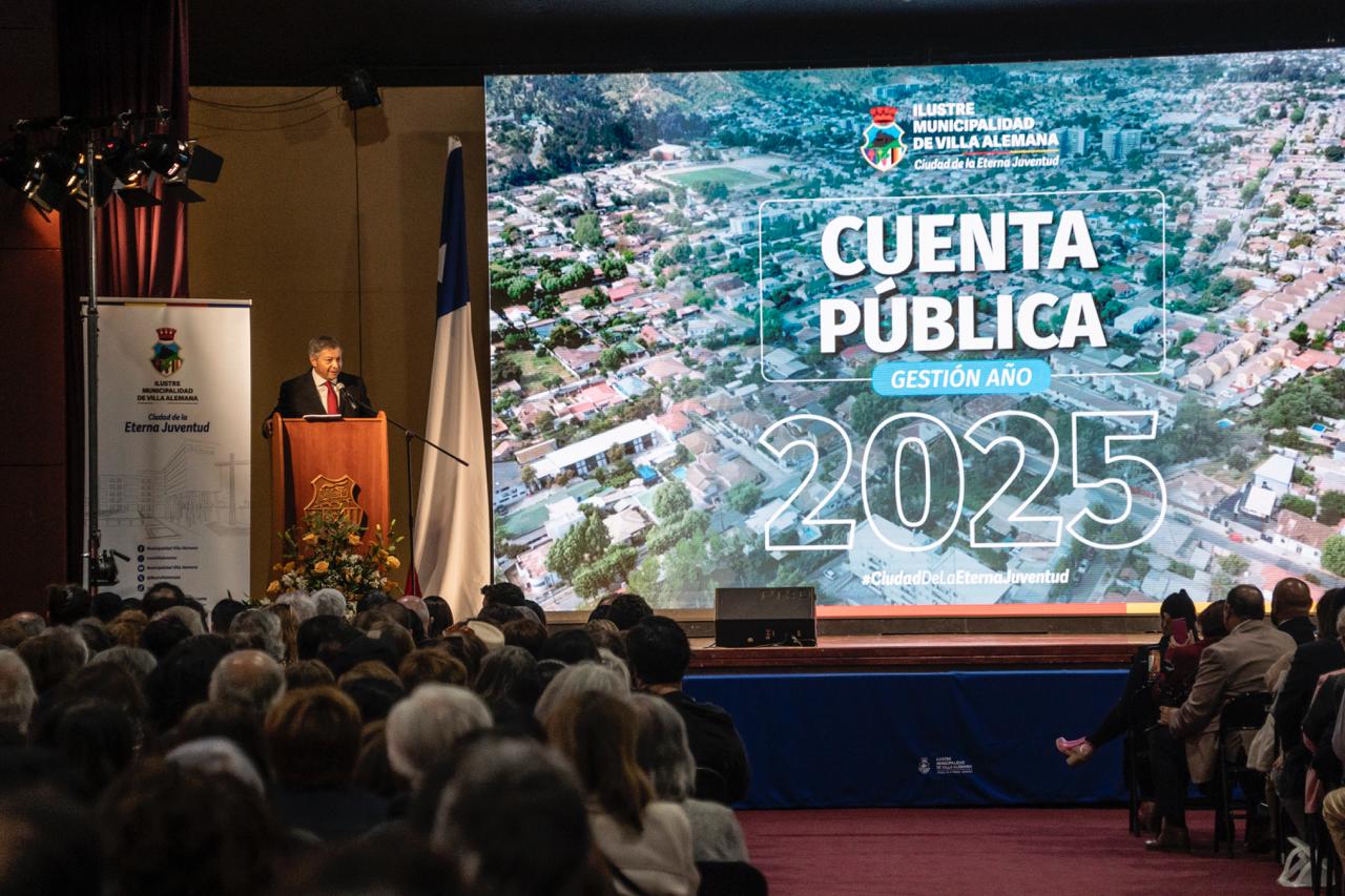 Una administración enfocada en la seguridad integral, en mejorar la gestión municipal e impulsar el desarrollo económico de la ciudad, fue lo que dio a conocer el alcalde Nelson Estay, en el marco de la Cuenta Pública 2025 de la Municipalidad de Villa Alemana.