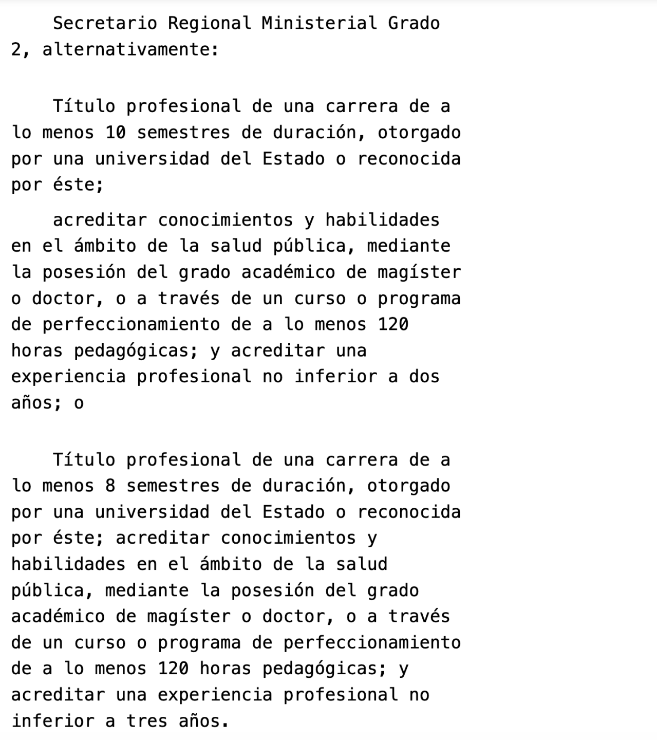 El Decreto con Fuerza de Ley (DFL) N°5 –según verificación en la Biblioteca del Congreso Nacional– establece que quienes ocupen estos cargos deben contar con un título profesional y acreditar conocimientos en salud pública, ya sea mediante un grado de magíster, doctorado, o bien, a través de programas de perfeccionamiento de al menos 120 horas pedagógicas, además de experiencia profesional mínima.