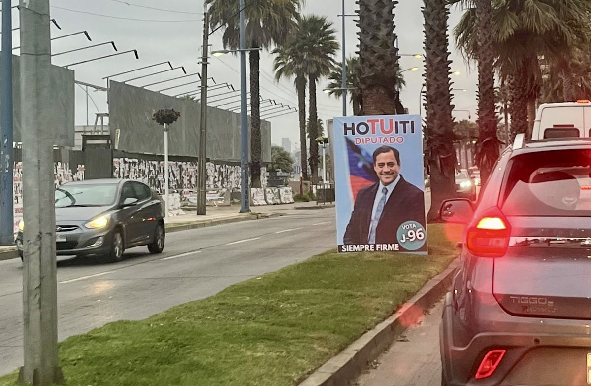 En plena tierra derecha de las campañas presidencial y parlamentarias en nuestro país, la presencia de propaganda electoral se ha vuelto parte del paisaje cotidiano en la región de Valparaíso. Desde la autorización para su instalación, el viernes 17 de octubre, las calles de Viña del Mar, Valparaíso, Concón, San Antonio y otras comunas del Distrito 7 se han llenado de carteles, pendones y estructuras publicitarias que anuncian una reñida contienda por los escaños en la Cámara de Diputadas y Diputados.