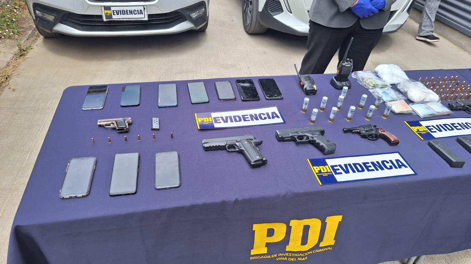 Un importante golpe al narcotráfico dio la Policía de Investigaciones (PDI) en Concón y Viña del Mar, luego de desarticular una organización criminal dedicada al tráfico de drogas, pero también al control territorial mediante el uso de armas de fuego.