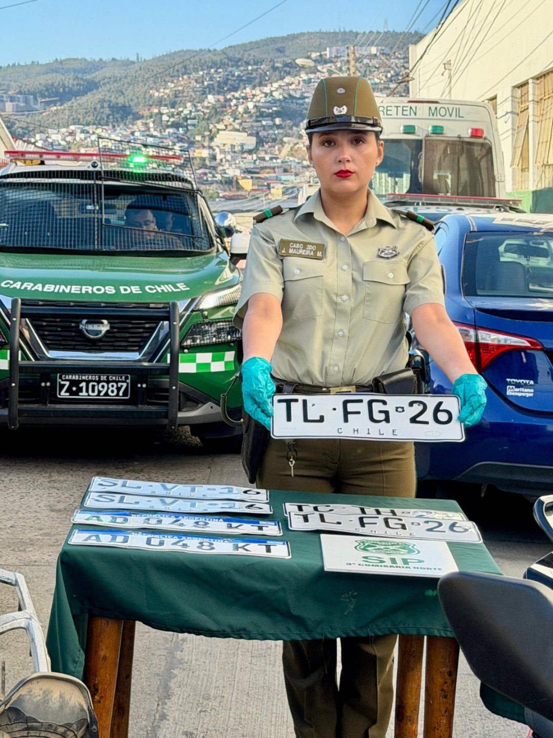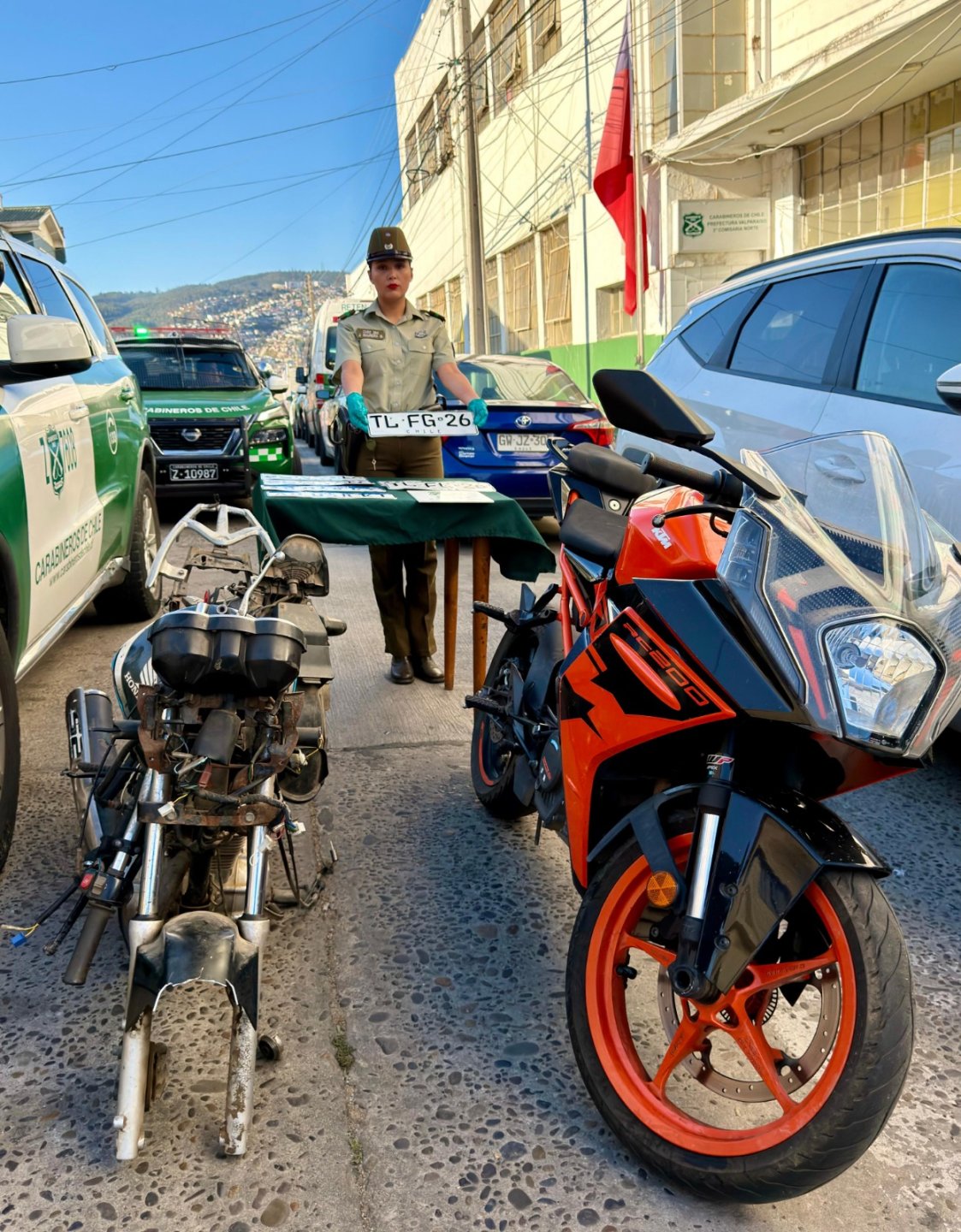 Posteriormente, gracias a labores de inteligencia policial y denuncias anónimas, se identificó un inmueble ubicado en calle Capellán Manuel Vargas Saldías, el cual era utilizado como centro de acopio de especies robadas. Durante la vigilancia del lugar, se logró interceptar una segunda motocicleta con patente adulterada y un station wagon cuyo conductor intentó darse a la fuga, colisionando con un cierre perimetral. En este procedimiento fueron detenidos tres ocupantes del vehículo, entre ellos una mujer que mantenía una medida cautelar de arresto domiciliario total vigente.
