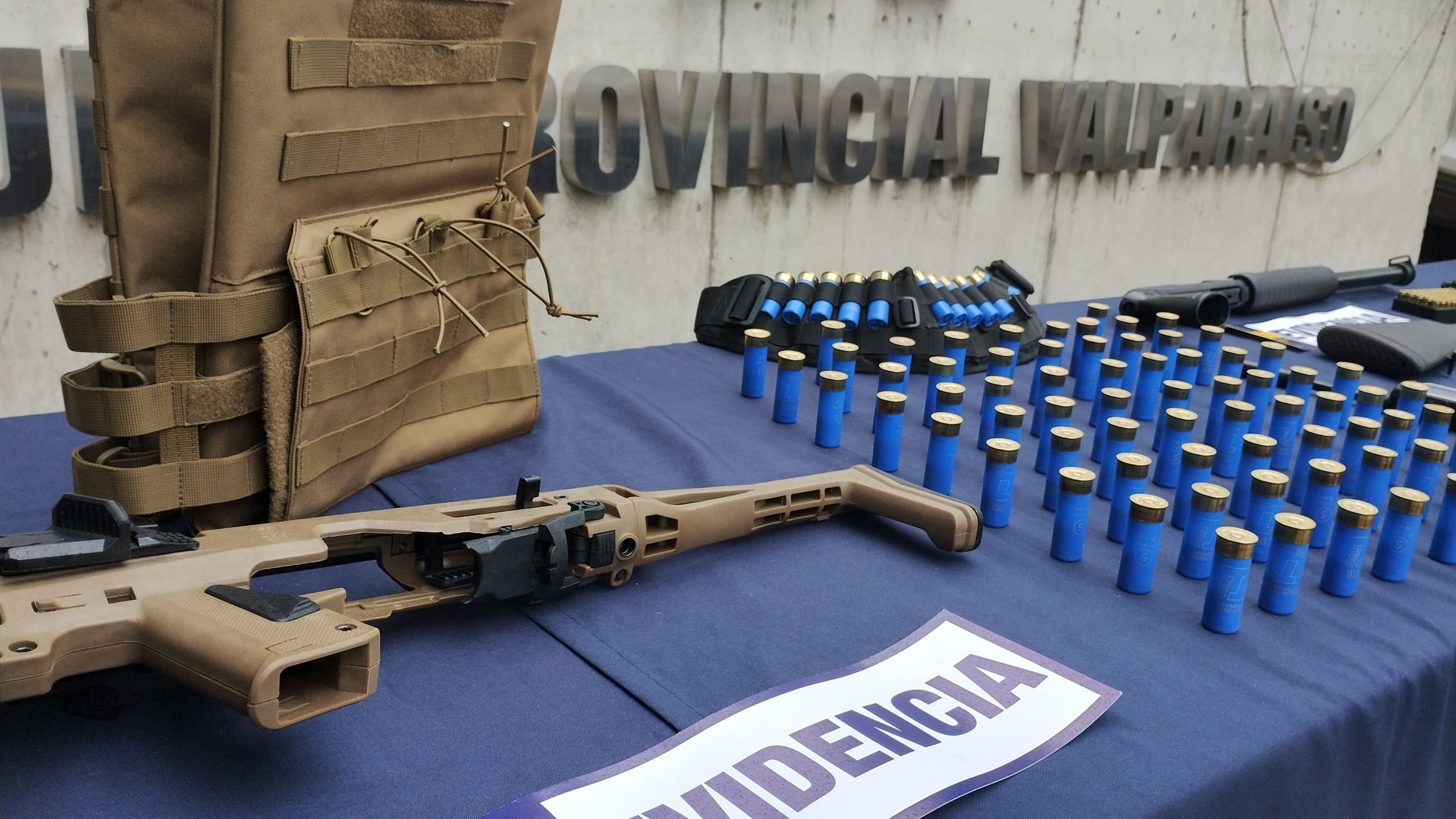 En el procedimiento se hallaron armamentos, situación abordada por el fiscal Ignazio Rivera, quien comentó que "dentro del contexto de la investigación de Sacfi Valparaíso y al diligenciar distintas órdenes de entrada y registro de los domicilios, se pudo contratar y verificar que en uno de los domicilios, el del líder de esta organización criminal, se encontraron al menos tres armamentos. Si bien, a la revisión de los armamentos y municiones pudimos constatar que el líder tenía permiso de porte y tenencia, lo que la investigación ha determinado es que era para poder resguardar los cargamentos que estaban realizándose de forma cotidiana en los inmuebles".