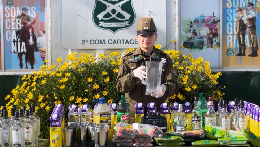 En específico, se hallaron botellas de ron, vodka y curazao, además de diversos insumos utilizados para la preparación y venta de tragos en jarros de litro.