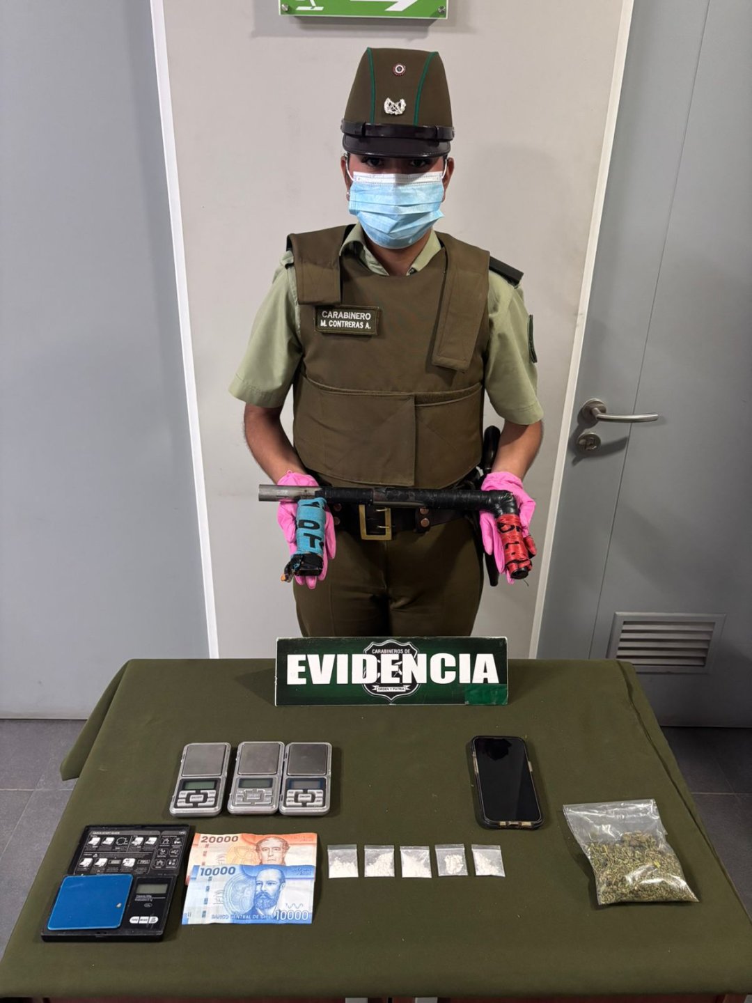 Al respecto, el capitán Fernando Carvallo de la 3ª Comisaría Limache, informó que "en el marco de los servicios preventivos en la comuna de Limache, específicamente en el sector de Los Laureles, se logró la detención de dos individuos por microtráfico y por tenencia de arma de fuego".