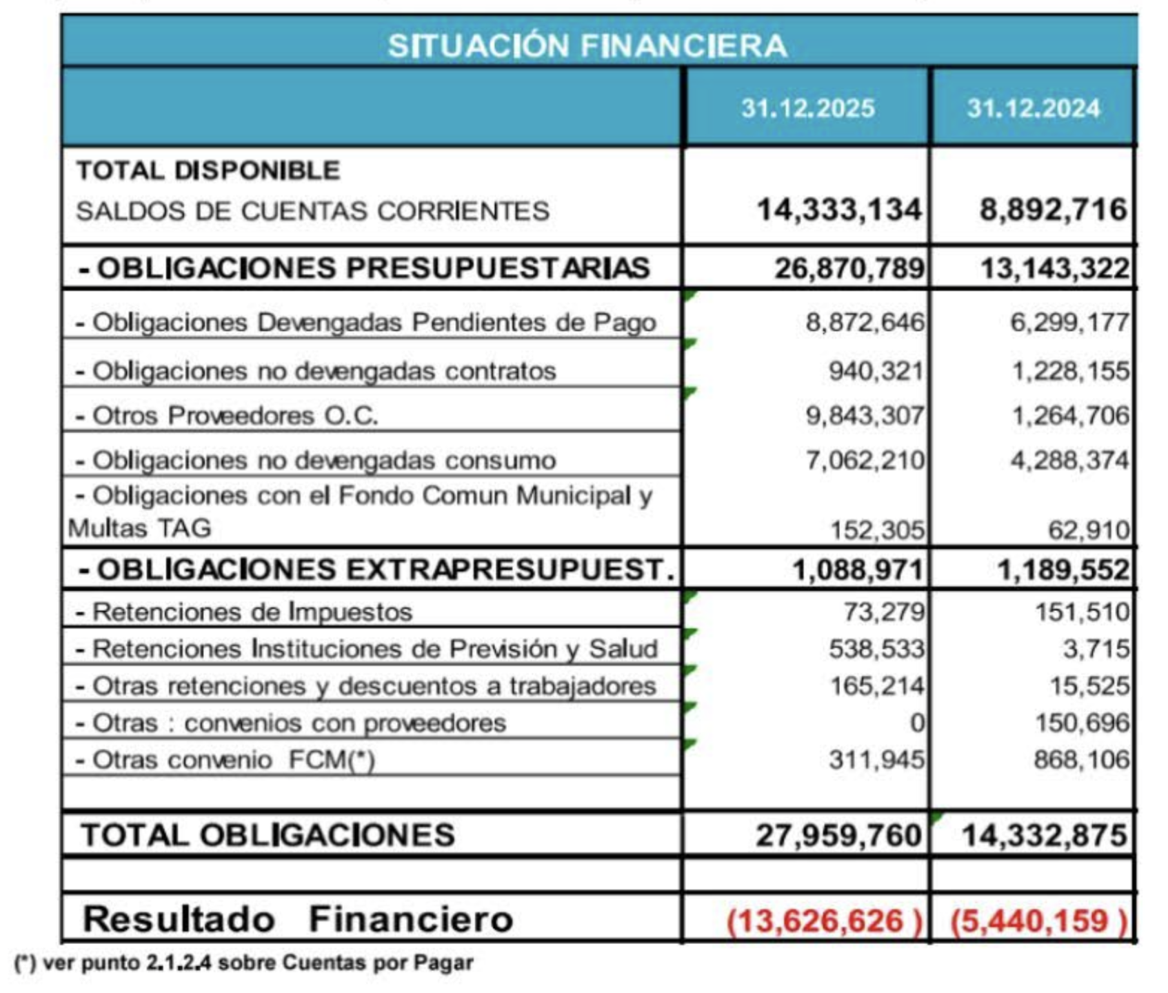 A juicio de Contreras, "en esto existe una desidia constante de la administración. Hemos sido insistentes en que se tomen medidas de cobranza, si es necesario externalizando o haciendo llamados a la regularización de deudas, pero han sido esfuerzos estériles frente a la pasividad de la Alcaldía. En general, espero que estos desajustes, que son relevantes, sean solucionados para el primer informe del 2026”.