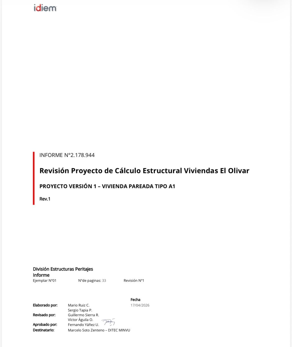 Respecto al contenido del informe del Idiem, detalló que "es una revisión completa y exhaustiva del cálculo estructural y entrega algunas conclusiones de que evidentemente hay deficiencia en este cálculo y propone conceptualmente una posibilidad de reparación. Ahora, eso es para que sea una bajada con ingeniería de detalle, hacer los cálculos correspondientes para proponer finalmente una planimetría que pueda reforzar la casa. Esa planimetría y ese cálculo, evidentemente tiene que conducir a una vivienda con el más alto estándar de resistencia, rigidez y seguridad".