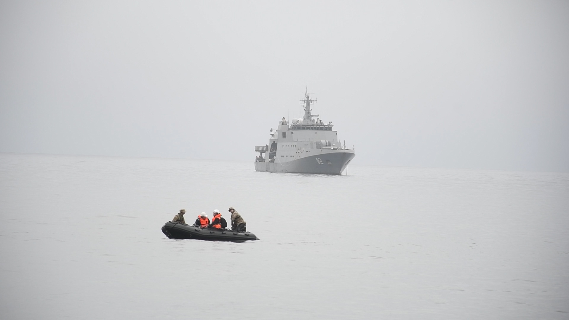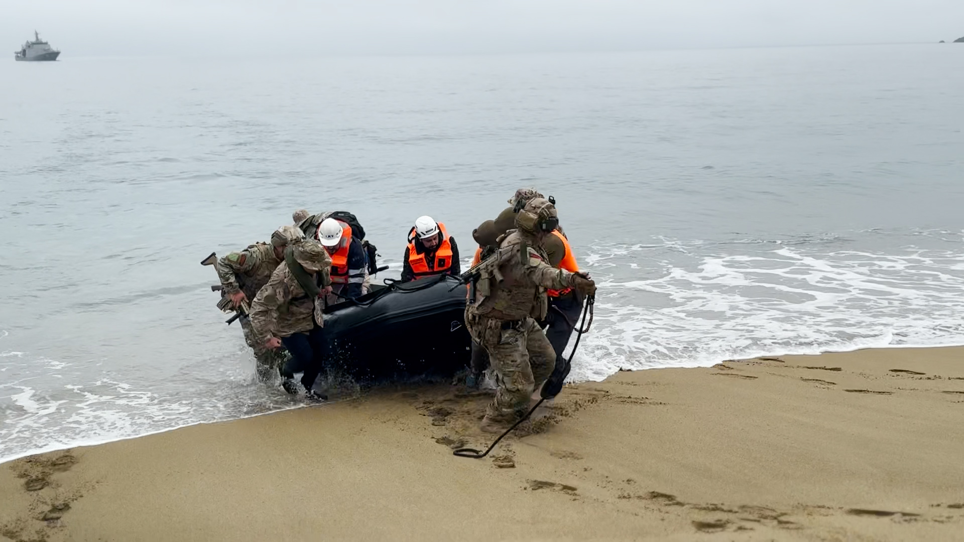 Una vez que la unidad fondeó en Laguna Verde, se inició el despliegue de los infantes de marina, quienes realizaron una operación de desembarco hacia la playa, trasladando en botes de goma al personal médico.