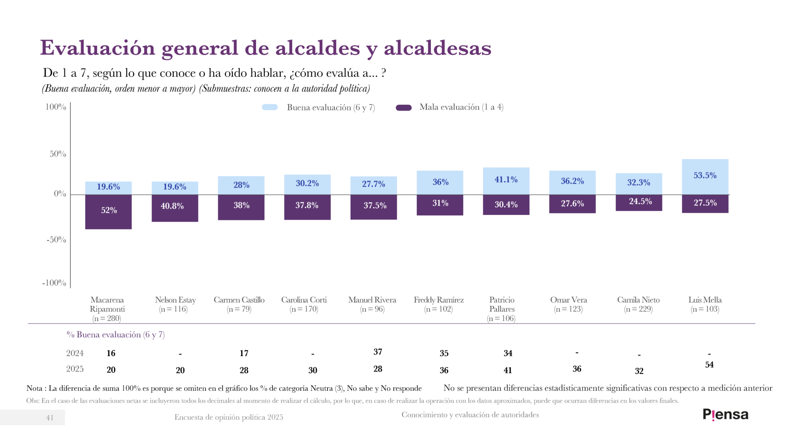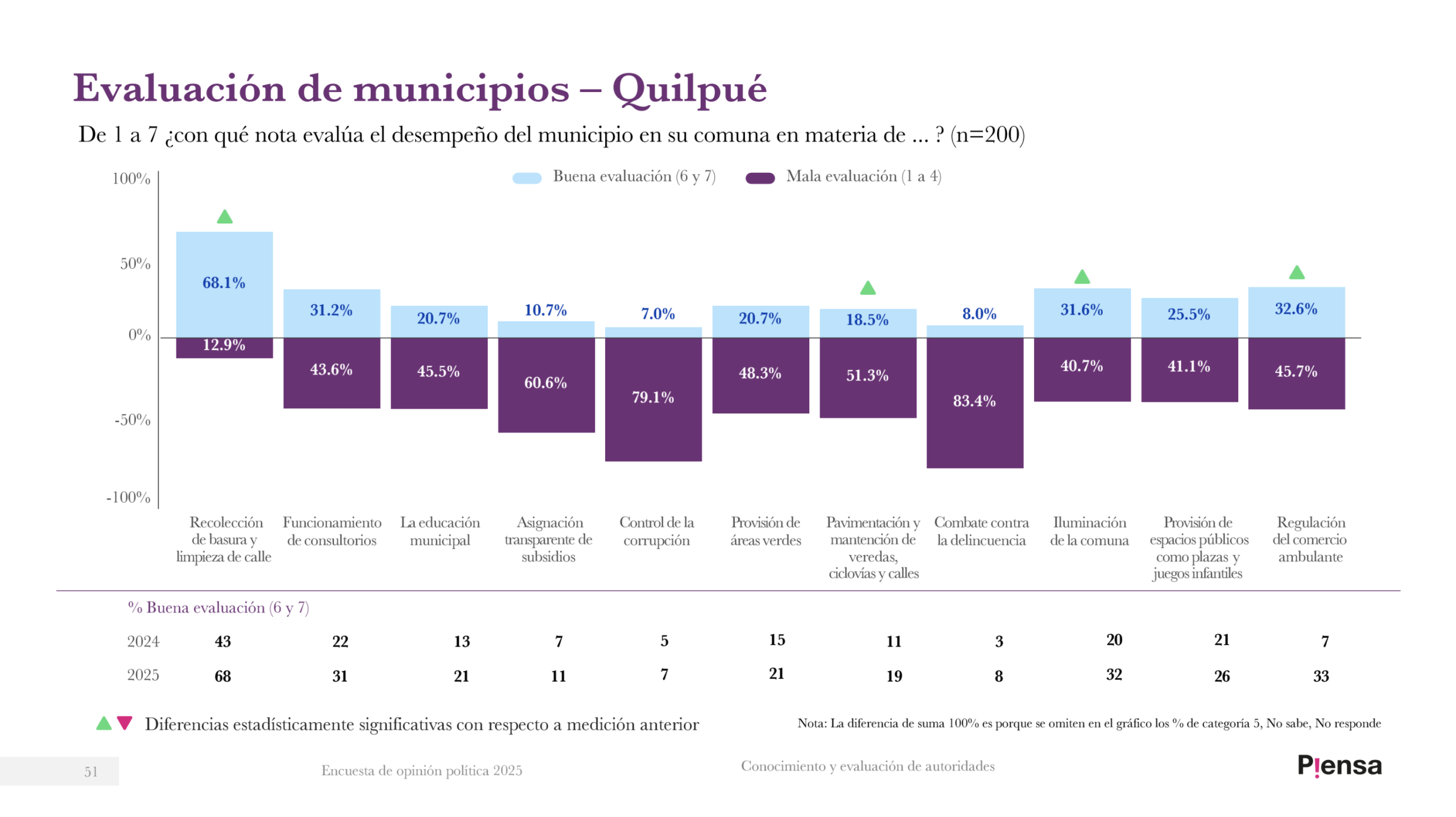 En conclusión, los resultados de la «Encuesta de Opinión Política 2025» elaborada por la Fundación Piensa reflejan un escenario complejo para los gobiernos comunales de la región de Valparaíso, donde el alto nivel de conocimiento de las autoridades locales contrasta con una evaluación ciudadana marcada por la desconfianza y el descontento. Si bien, algunos alcaldes logran destacarse por su gestión y cercanía con la comunidad, la mayoría enfrenta importantes desafíos en materias como seguridad, transparencia y eficiencia municipal, temas que –según el estudio– continúan siendo las principales preocupaciones de los vecinos de estas 10 comunas analizadas en esta oportunidad.