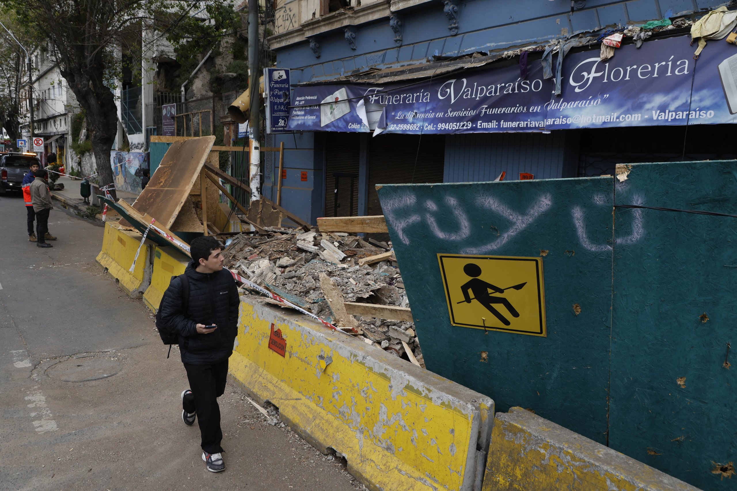 Este jueves se produjo el derrumbe de parte de una pared perteneciente a la fachada de una vivienda en la avenida Colón, a la altura de la avenida Francia en la ciudad de Valparaíso.