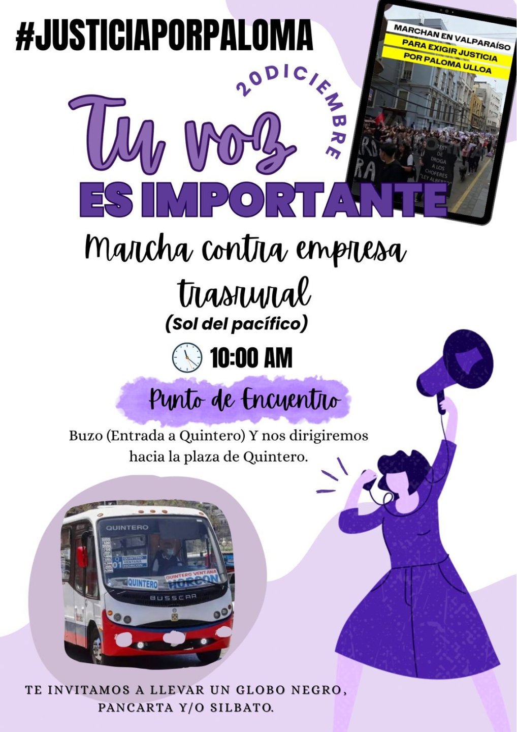 Cercanos a Paloma Ulloa se manifestarán contra la empresa de la micro que dio muerte a la joven en el cerro Playa Ancha de Valparaíso el pasado jueves 4 de diciembre.