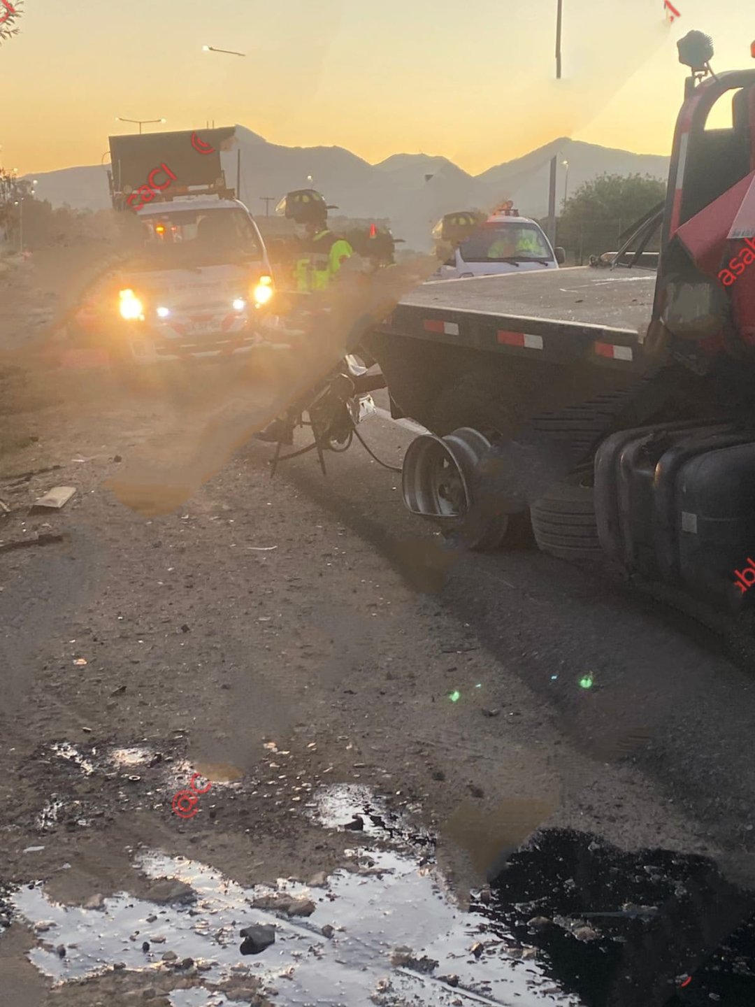 Se trata de un accidente de alta energía protagonizada por vehículo menor y un camión grúa que se encontraba estacionado a un costado del camino. Según los antecedentes que se manejan el auto menor impactó con mucha fuerza a este camión y luego volcó en el lugar.