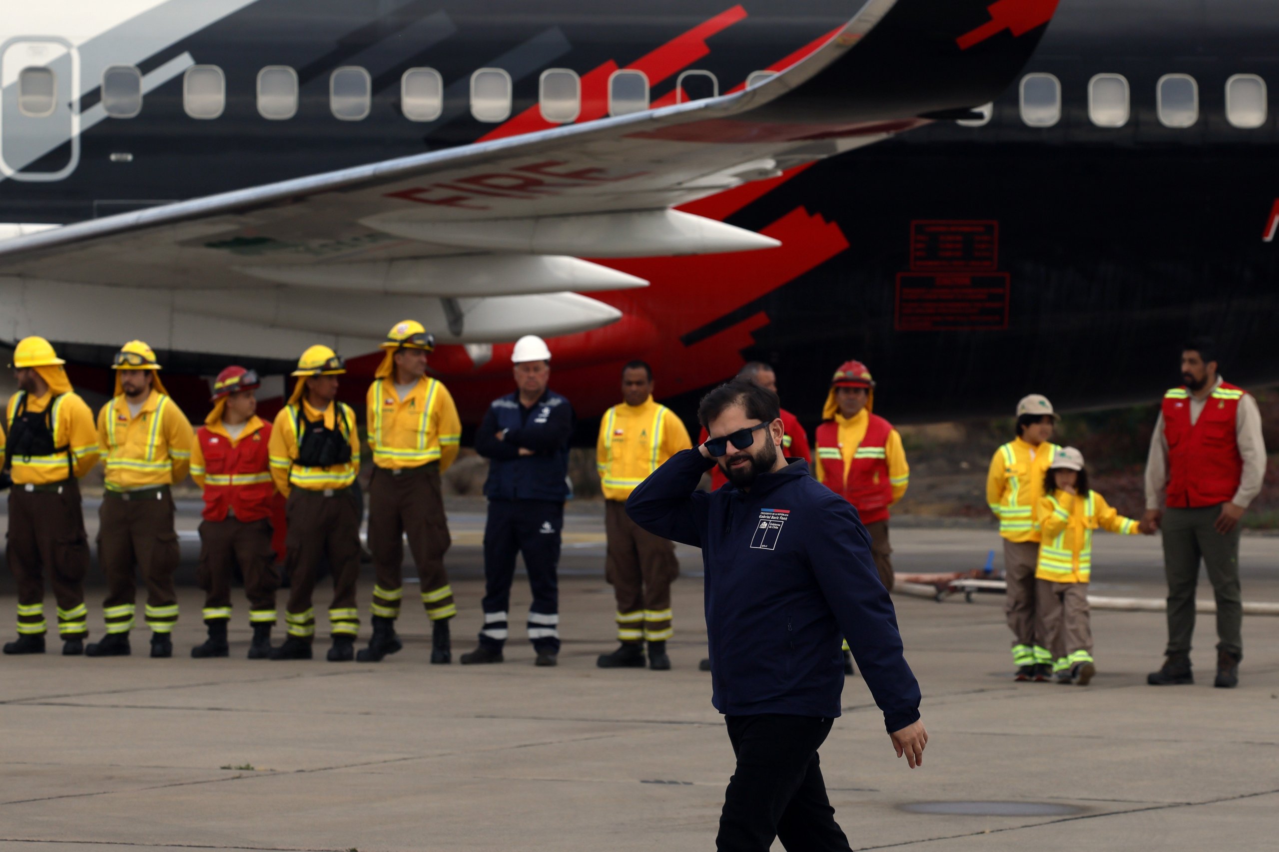 El Presidente Gabriel Boric llegó hasta la comuna de Concón para encabezar una visita técnica al avión tanquero Boeing 737 "Fireliner", que tiene al Aeródromo Torquemada como su base de operaciones.