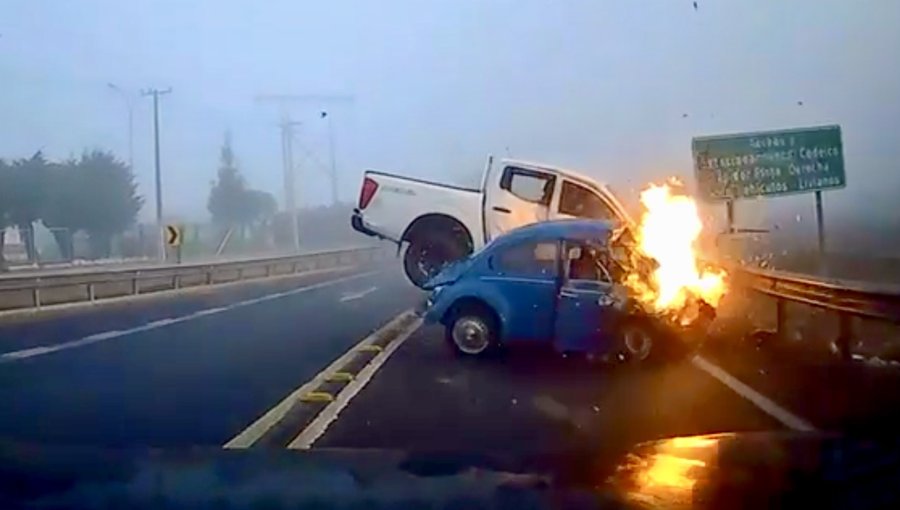 Puranoticia.cl tuvo acceso a las imágenes de la cámara de uno de los vehículos que circulaba por esta carretera, la cual muestra el momento exacto del hecho.