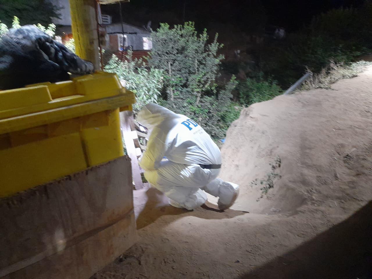 En el lugar, los equipos especializados establecieron que la víctima corresponde a un hombre chileno de 26 años de edad, sin antecedentes policiales, quien presentaba diversos impactos balísticos en la región torácica, abdominal y en extremidades distales. Según el examen del médico criminalista, la causa de muerte sería un traumatismo tóraco-abdominal provocado por proyectil balístico.