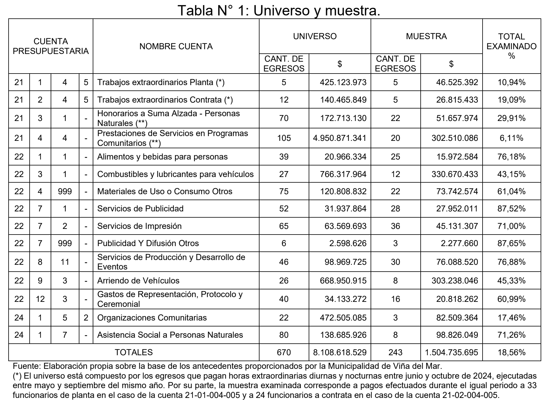 La Contraloría Regional de Valparaíso llevó a cabo una auditoría y examen de cuentas a los gastos, uso de recursos y transferencias otorgadas por la Municipalidad de Viña del Mar entre los meses de enero y septiembre de 2024, detectando algunos incumplimientos relacionados al pago de horas extraordinarias no acreditadas y pagadas en exceso, así como también al uso reiterado del nombre e imagen de la alcaldesa Macarena Ripamonti, entre otras situaciones que pasaremos a detallar.
