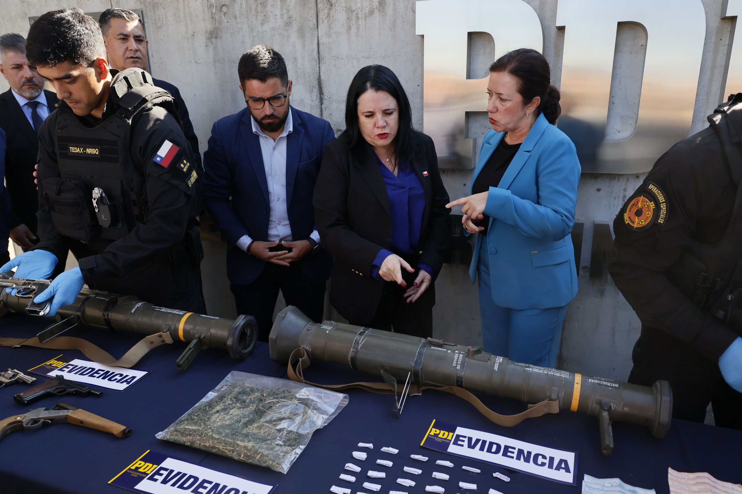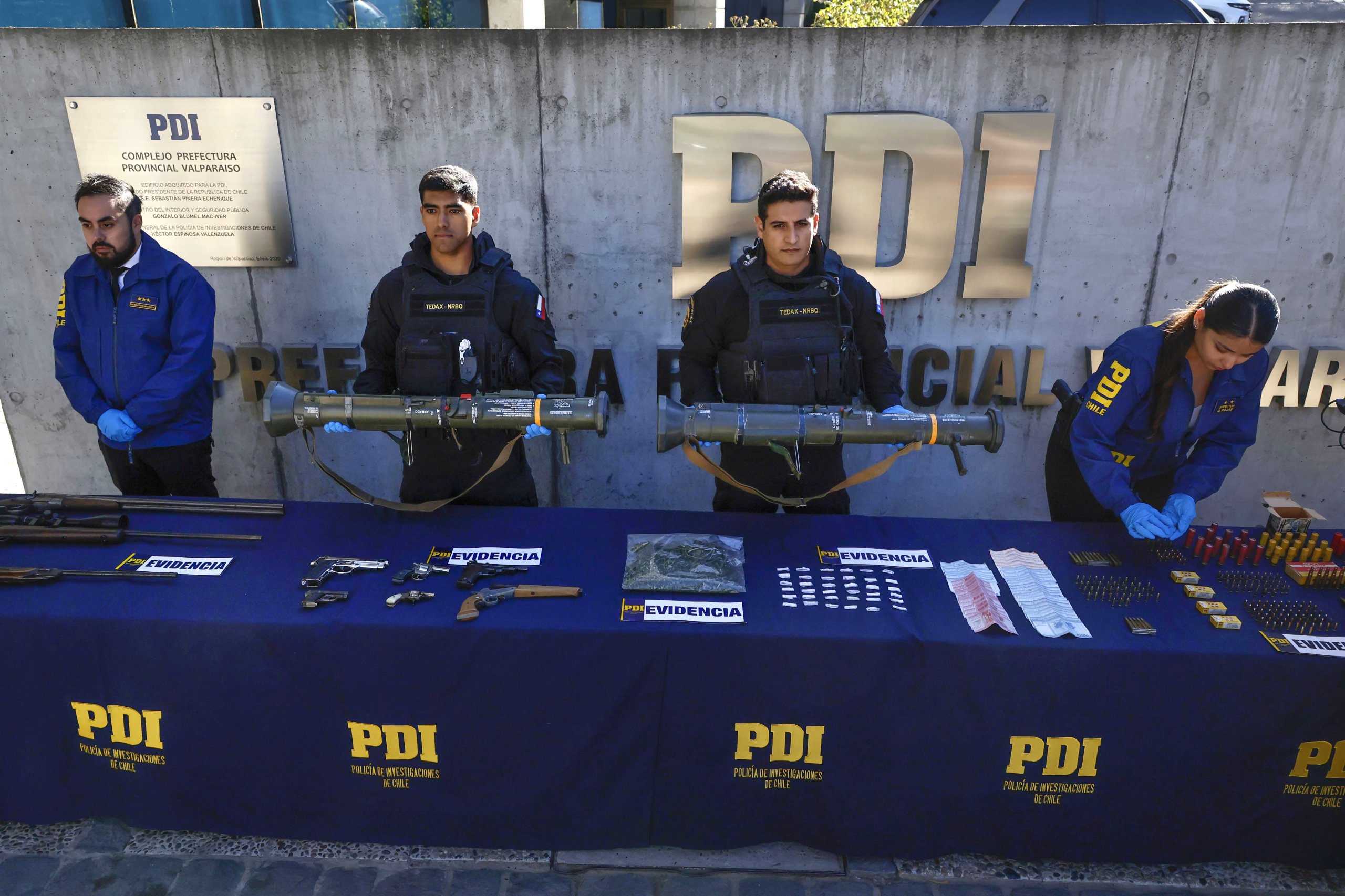 El subdirector de Investigación Policial y Criminalística de la PDI, prefecto general Hugo Haeger, explicó de las armas cortas que "están todas aptas para el disparo. Una de ellas, si bien es a fogueo, se encuentra apta para el disparo, además destaca la presencia y el poder de esta organización de dos lanzacohetes. Si bien, este armamento es de uso militar, es de características desechables. Fueron utilizados con anterioridad, así que está en proceso de investigación, pero además trabajamos para determinar si estos ejemplares balísticos pueden ser reutilizados en futuras ocasiones".