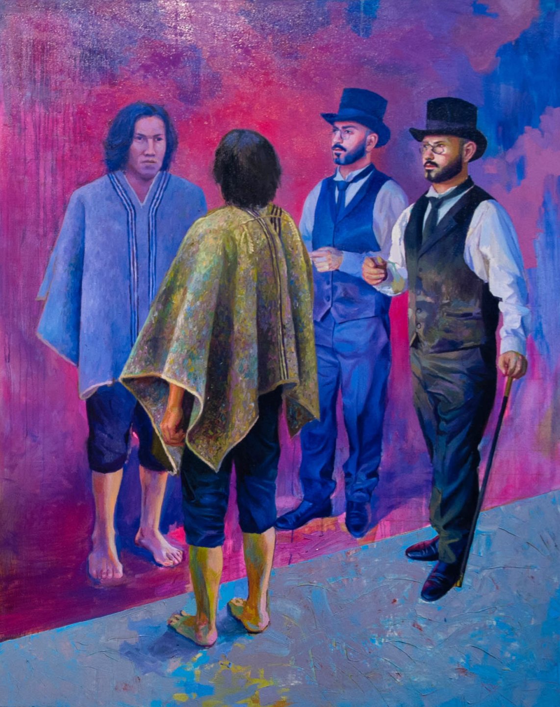 La exposición Komütuwe del artista chileno Pablo Lincura ya se inauguró Judas Galería, en Valparaíso y se exhibirá hasta el 31 de octubre. A través de una serie de pinturas al óleo, Lincura reflexiona sobre la historia, la identidad y la representación del pueblo mapuche en diálogo con la cultura contemporánea.