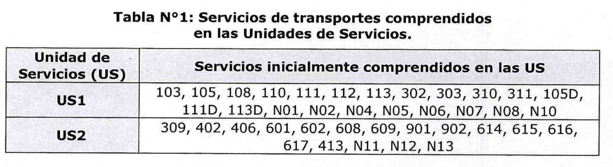 Por un lado, la US 01 contará con servicios inicialmente comprendidos en los actuales recorridos 103, 105, 108, 110, 111, 112, 113, 302, 303, 310, 311, 105D, 111D, 113D, N01, N02, N04, N05, N06, N07, N08 y N10. En tanto, la US 02 abarcará los recorridos 309, 402, 406, 601, 602, 608, 609, 901, 902, 614, 615, 616, 617, 413, N11, N12 y N13.