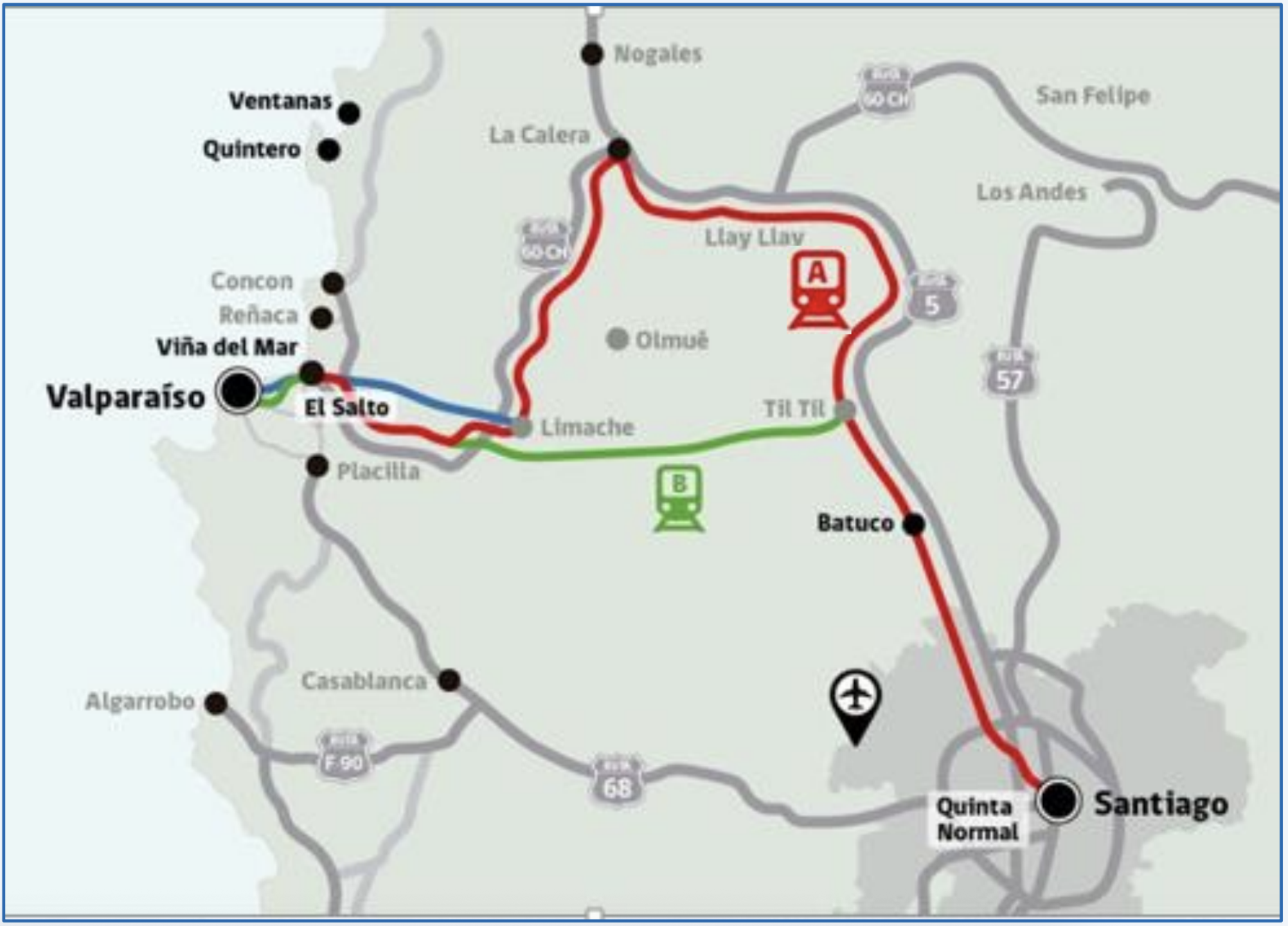 Cabe hacer presente que una segunda etapa contempla una nueva vía férrea entre Tiltil y Limache, además de una nueva vía férrea entre El Salto y Valparaíso.