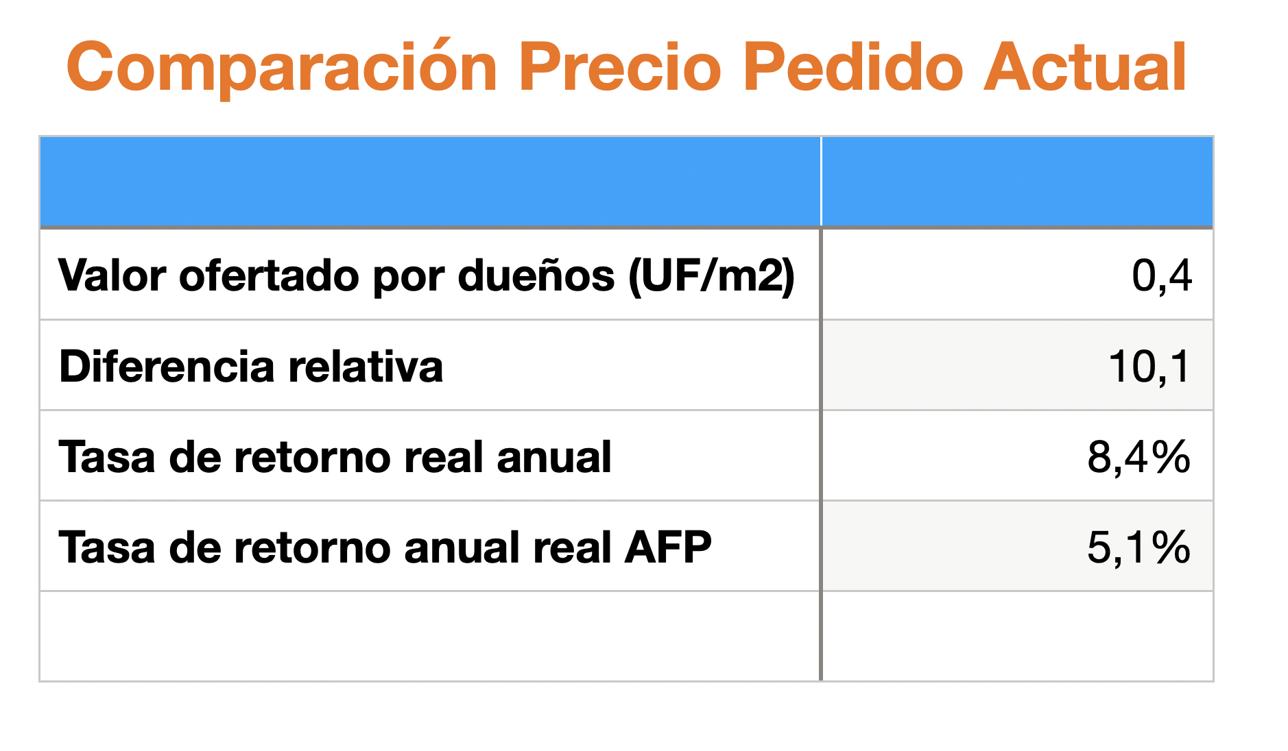 En primer lugar, se establece que "no se ha invertido mayormente en el predio", por tanto, se trata un retorno sólo por mantener un terreno. A modo de referencia, la rentabilidad acumulada real de las AFP en el mismo período es de 5,1% real anual.