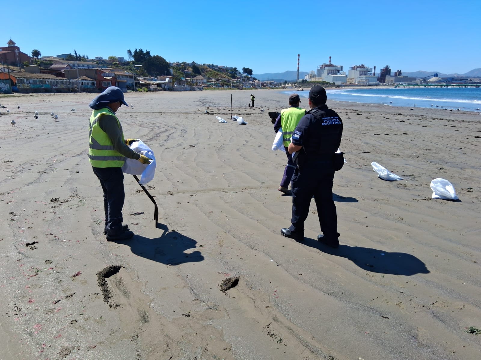 En ese sentido, el capitán de Puerto (s) de Quintero, capitán de Corbeta Francisco Maureira, explicó que"se recibió una información de una posible mancha oleosa varada en la playa Ventanas, ante lo cual se desplegó una patrulla de Policía Marítima a objeto de constatar la veracidad de dichos hechos".