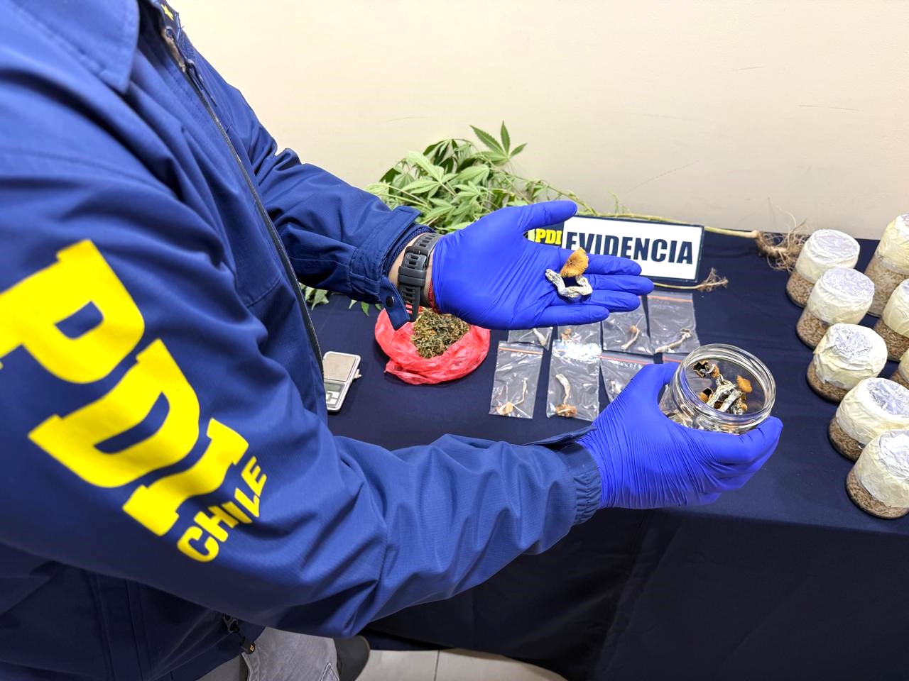 La investigación, desarrollada en coordinación con el Ministerio Público, estableció que la imputada —de iniciales F.M.R.A. y sin antecedentes policiales— se dedicaba al cultivo, cosecha y comercialización de hongos alucinógenos del género Psilocybe, además de cannabis sativa, utilizando redes sociales para coordinar ventas bajo la modalidad delivery.