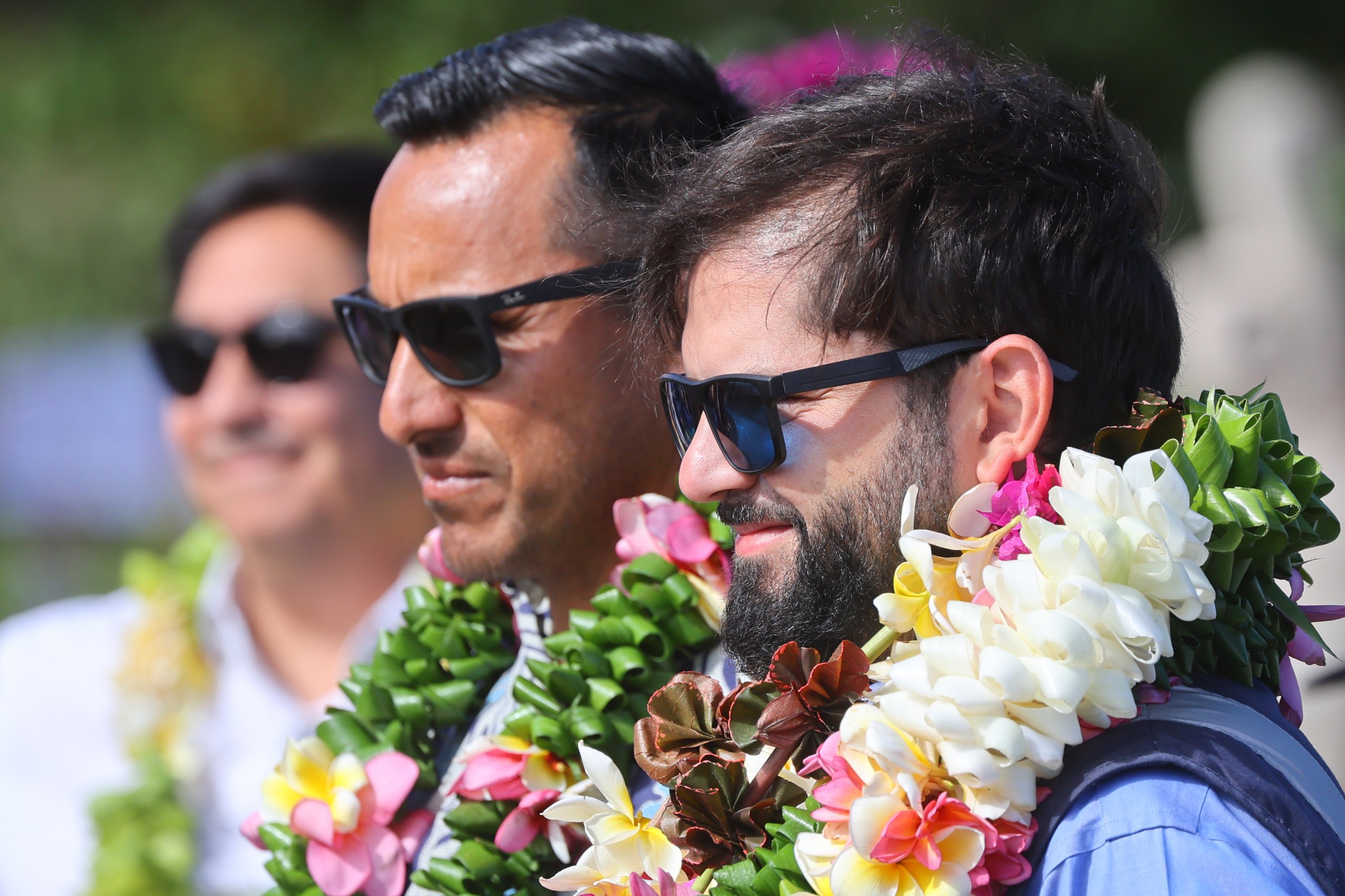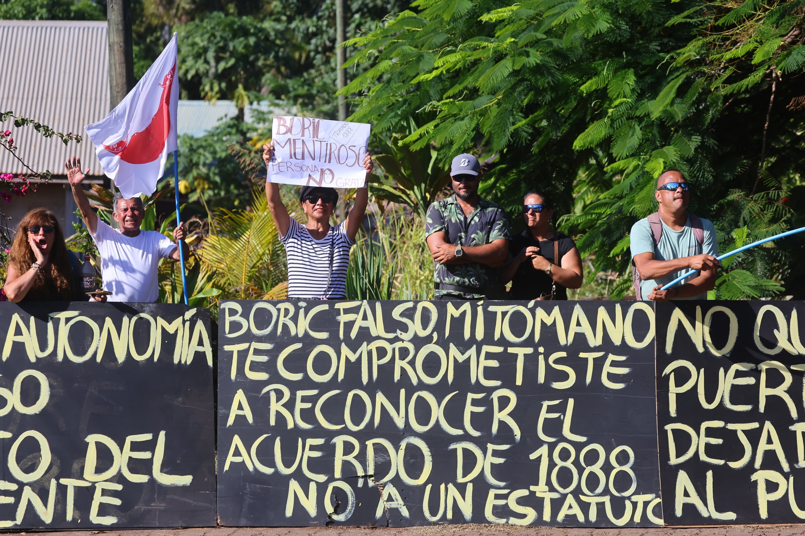 El jefe de Estado fue recibido con el tradicional karone tiare y luego por las autoridades, pero también se registraron manifestaciones.