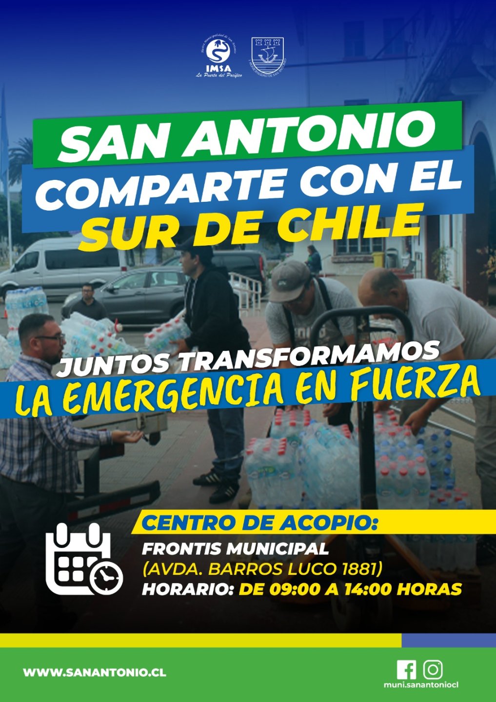 En la comuna porteña, la respuesta se materializó mediante la campaña «San Antonio comparte con el sur de Chile», organizada por el Municipio, que busca reunir insumos de primera necesidad para ser enviados a los lugares afectados. El llamado está dirigido tanto a vecinos de la comuna como a la empresa privada, promoviendo un sentido de corresponsabilidad ante una situación que trasciende los límites locales.
