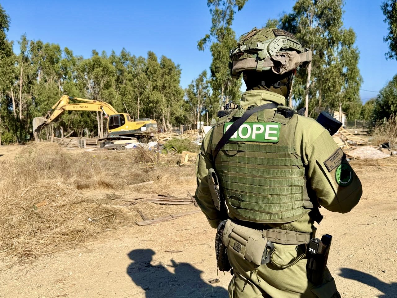 La general Patricia Vásquez, jefa de Zona de Carabineros Valparaíso, explicó que "cuando ingresamos encontramos un vehículo con encargo por robo desde Santiago, que estaba totalmente desmantelado. Tenemos servicios especializados desplegados al interior de la toma chequeando las desarmadurías que hay".