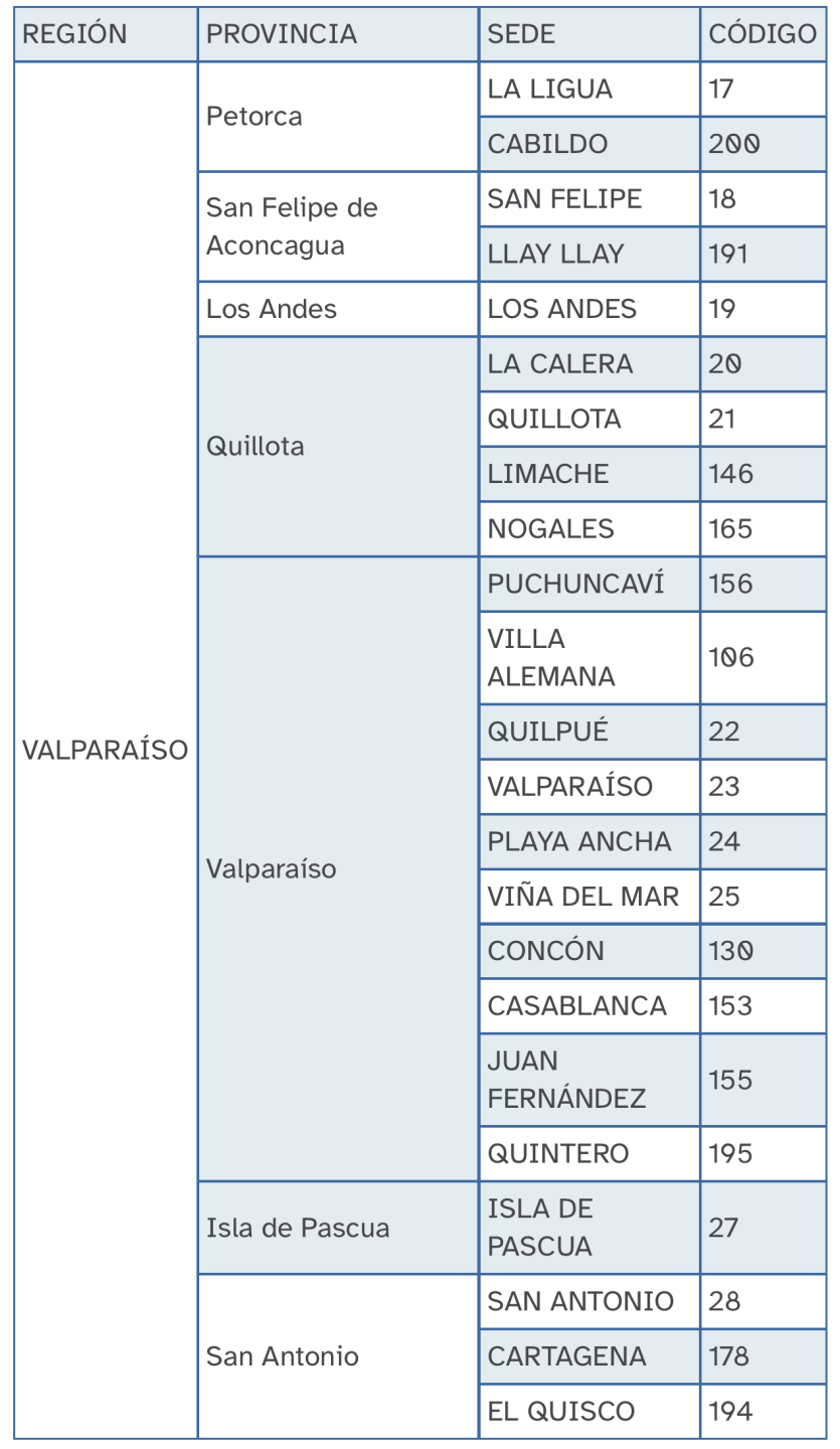 Estas son las unidades o zonas geográficas establecidas por el Departamento de Evaluación, Medición y Registro Educacional (Demre) para la rendición de la Prueba de Acceso a la Educación Superior Regular en la región de Valparaíso.