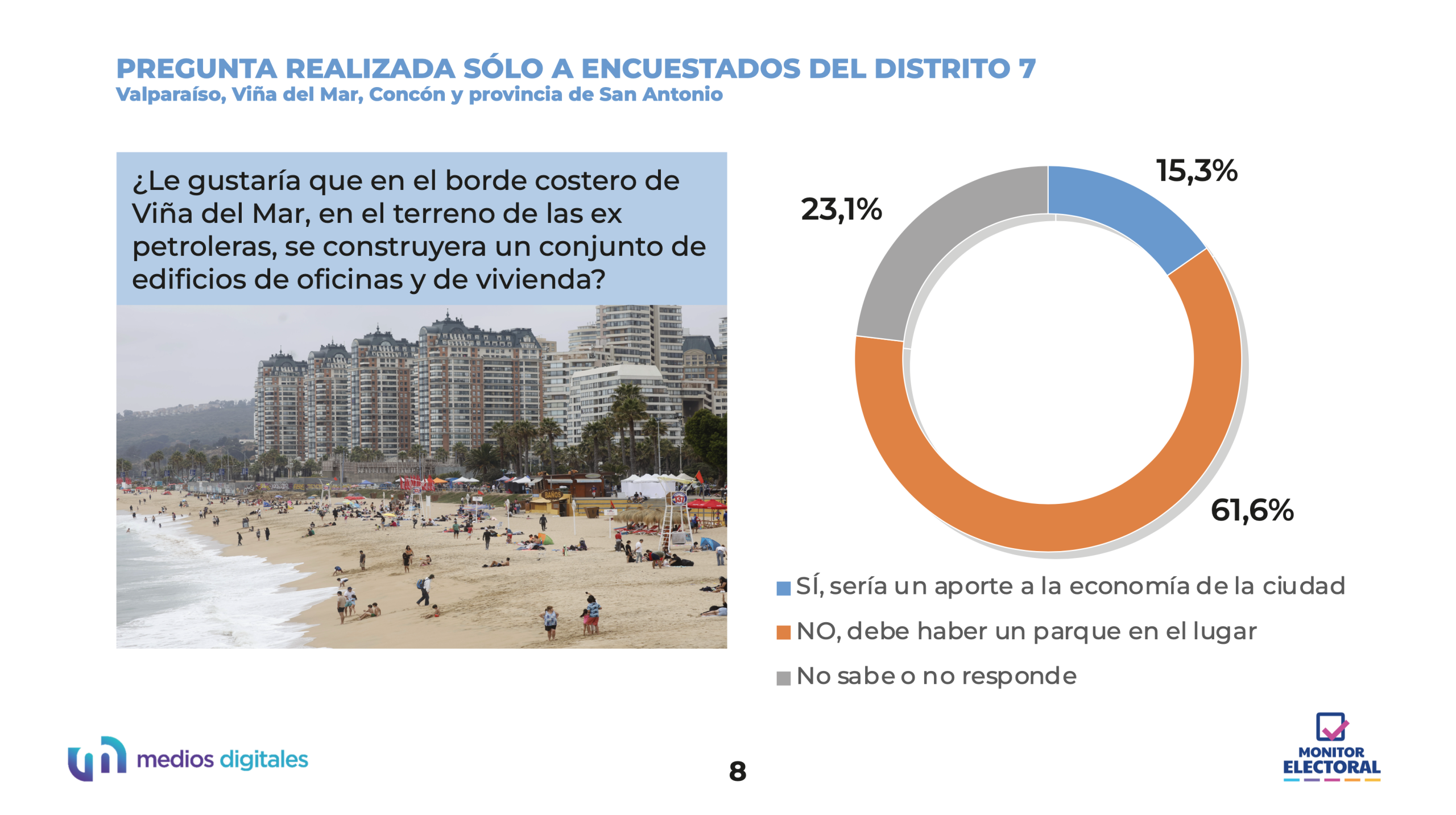 La pregunta en concreto fue la siguiente: ¿Le gustaría que en el borde costero de Viña del Mar, en el terreno de las ex petroleras, se construyera un conjunto de edificios de oficinas y de vivienda? Las respuestas fueron claras...