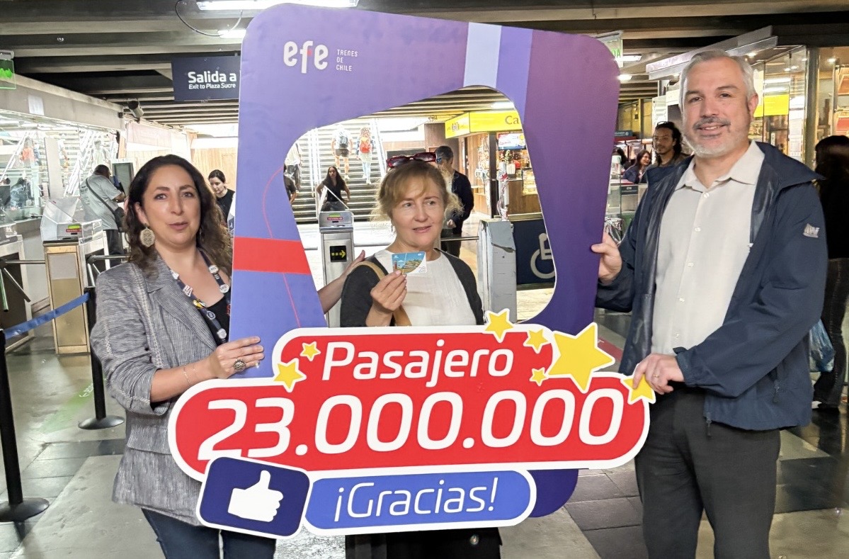 El hito se concretó en la Estación Viña del Mar, donde el gerente general de EFE Valparaíso, Miguel Saavedra, junto a la gerenta de Pasajeros, María Alicia Sánchez, esperaron a la persona que cruzara el torniquete y se transformara simbólicamente en el pasajero número 23 millones de este año. La sorpresa fue para una usuaria, quien recibió como premio un pase mensual con viajes ilimitados por un mes, válido para las tres zonas del servicio.