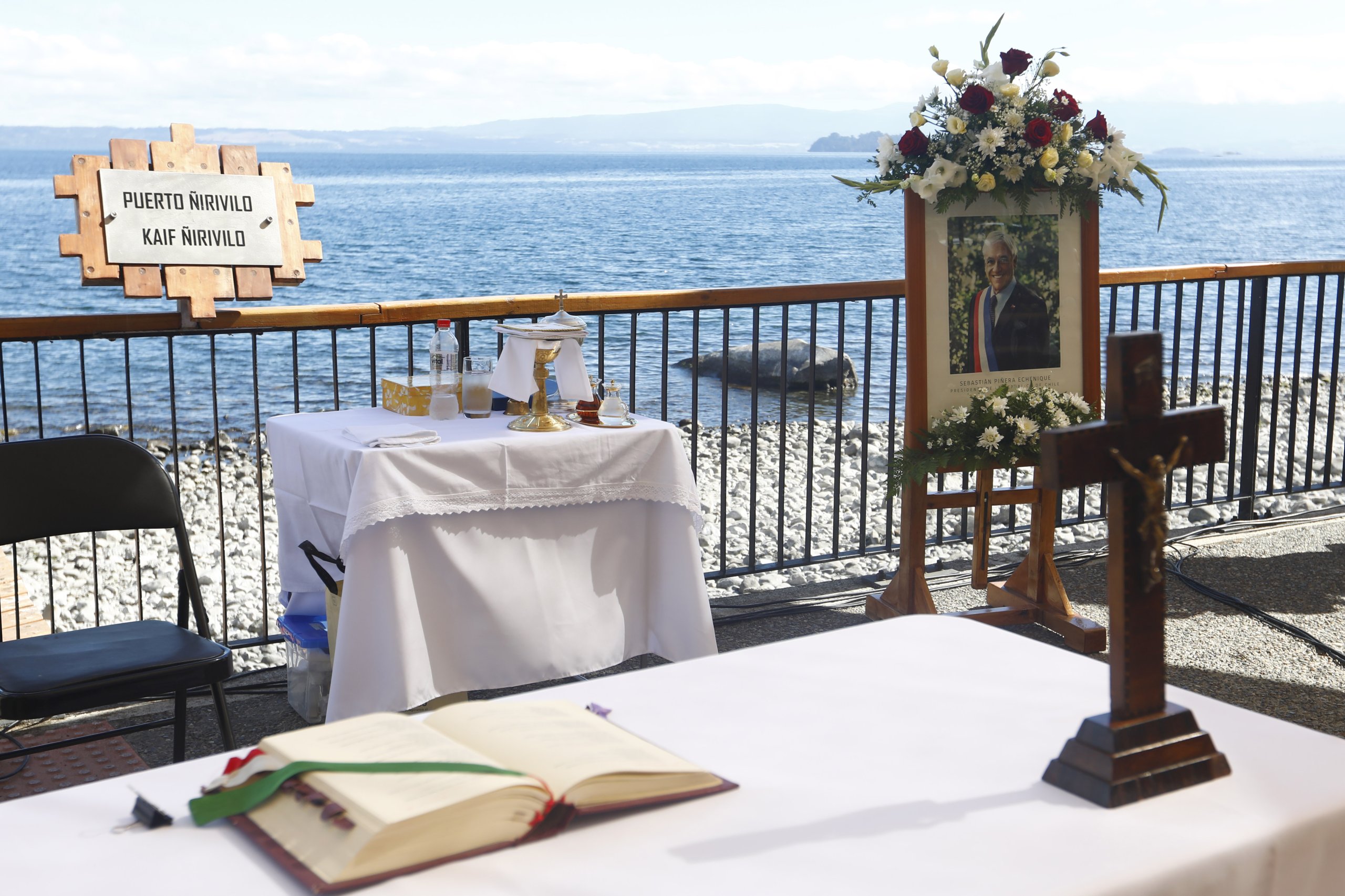 La liturgia se realizó frente al Lago Ranco, en la comuna del mismo nombre, en la cual participaron sus familiares directos, encabezados por su viuda, Cecilia Morel, además de autoridades locales y vecinos.